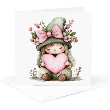 Little Fairy and Flower Card Our 5" x 7" blank cards are suitable for any occasion, whether you want to thank someone for helping you out or just to say hello. This card is perfect for all types of events, with colorful pansies and cheerful flowers. Light touches of hand-painted glitter are added to the vintage image to accent it perfectly.