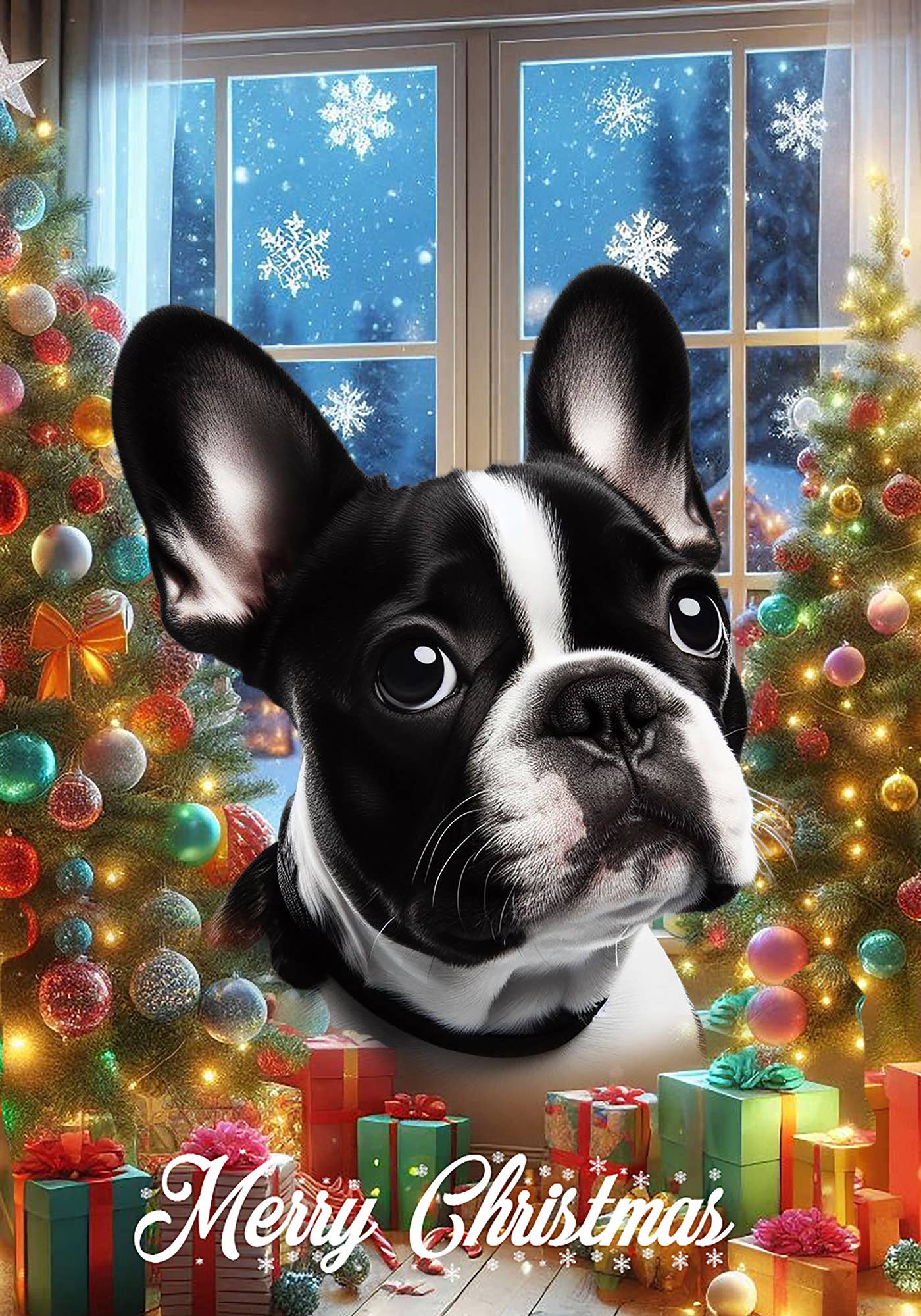 This French Bulldog White & Black holiday flag features your favorite breed donning a santa hat in a winter scene, and says "Dear Santa, Define Naughty". With beautiful artwork by award-winning artist Tamara Burnett, these 12" x 18" garden flags make a great addition to your yard, or a wonderful gift for the pet lover in your life. Available in dogs, cats, hamsters, guinea pigs and other critters. Printed in the USA. Series 5 ornaments are restricted from posting on all third-party platforms, such as Amazon and Etsy.