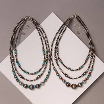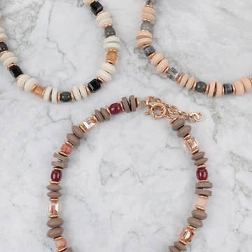 A black-forward capsule with solid silver and neutral accents. This capsule includes five individually hand-beaded necklaces unified by a restrained palette and subtle material variation. The necklaces feature a delicate profile with fine-scale beadwork and an intentionally understated presence. Designed as a complete merchandising moment, the collection offers cohesion while allowing each piece to stand independently. All necklaces are one of a kind and will not be reproduced. This capsule is ideal for tabletop displays, wall hooks, or curated jewelry cases. Details • Set includes 5 one-of-a-kind necklaces; no reproductions • Ships exactly as shown • Japanese glass beads • Solid silver accents and clasp • Select natural and globally sourced elements • Necklace lengths range approximately from 16″ to 18.5″ Each necklace ships in an individual pouch for protection. Hand-beaded in the United States