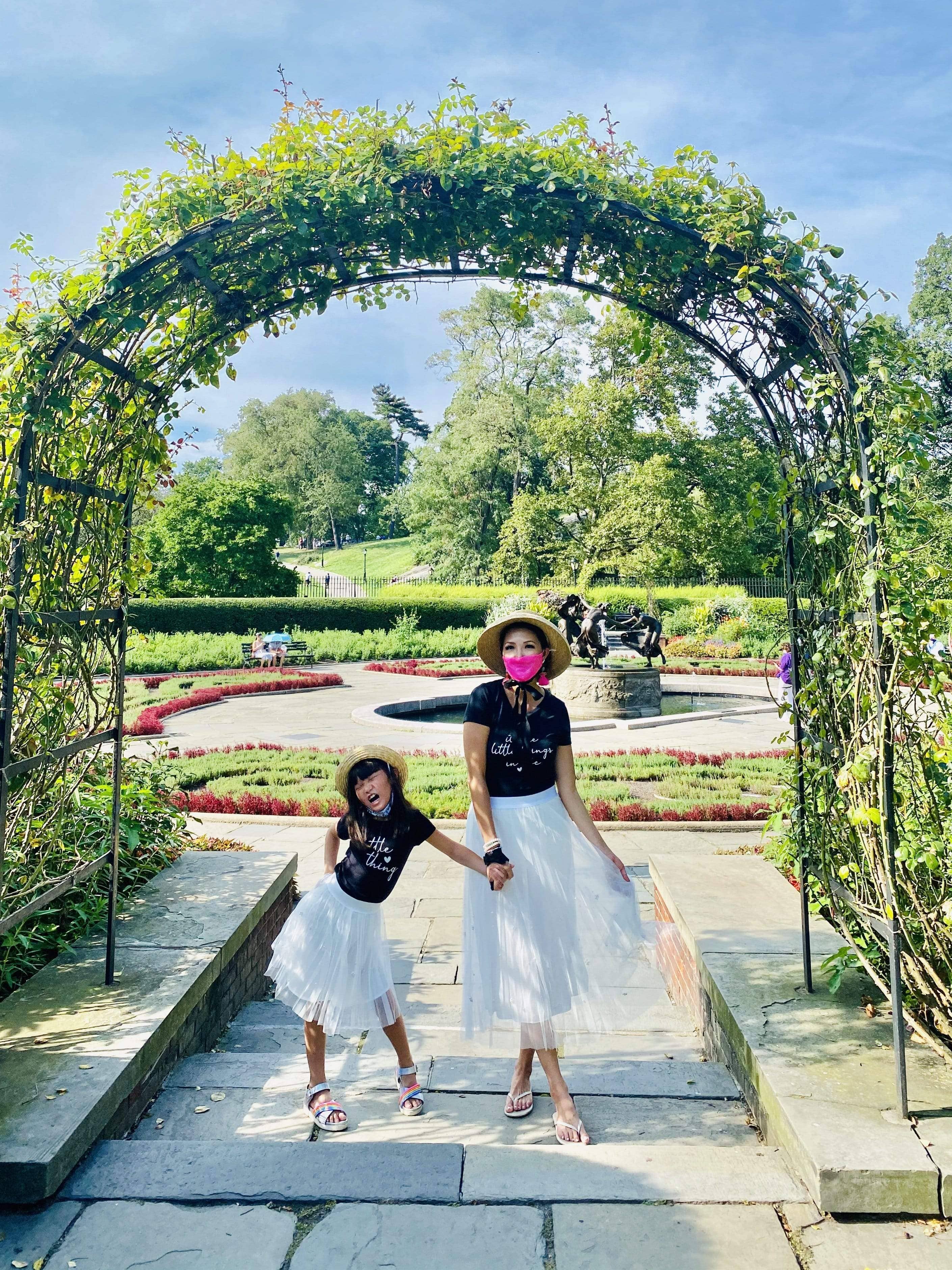 Our Mommy and ME collection is here!Just like our Aluna Skirt in Rum Sunset, but sized for girls, this style has rows of ruffled rainbow ribbon on sheer mesh over pink knit. Twirl and spin with Mom! Poly & Elastane with elastic waistband Made in Los Angeles, USA