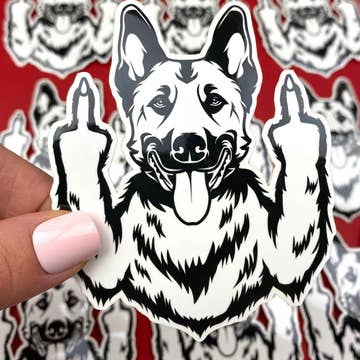 This Malinois sticker is perfect for any K9 handler. It features a Malinois giving the middle finger, and is sure to make everyone laugh. Show your support of your furry partner with this hilarious sticker. Measurements:Â 3" x 4"Â Packaging: Stickers are packed loose unless packaging is requested. Waterproof and Weatherproof Premium Vinyl:Â Our stickers are professionally printed on waterproof and weatherproof durable vinyl. Great for cars, windows, phones, laptops, hard luggage, water bottles and most any hard, smooth surface and are dishwasher safe.