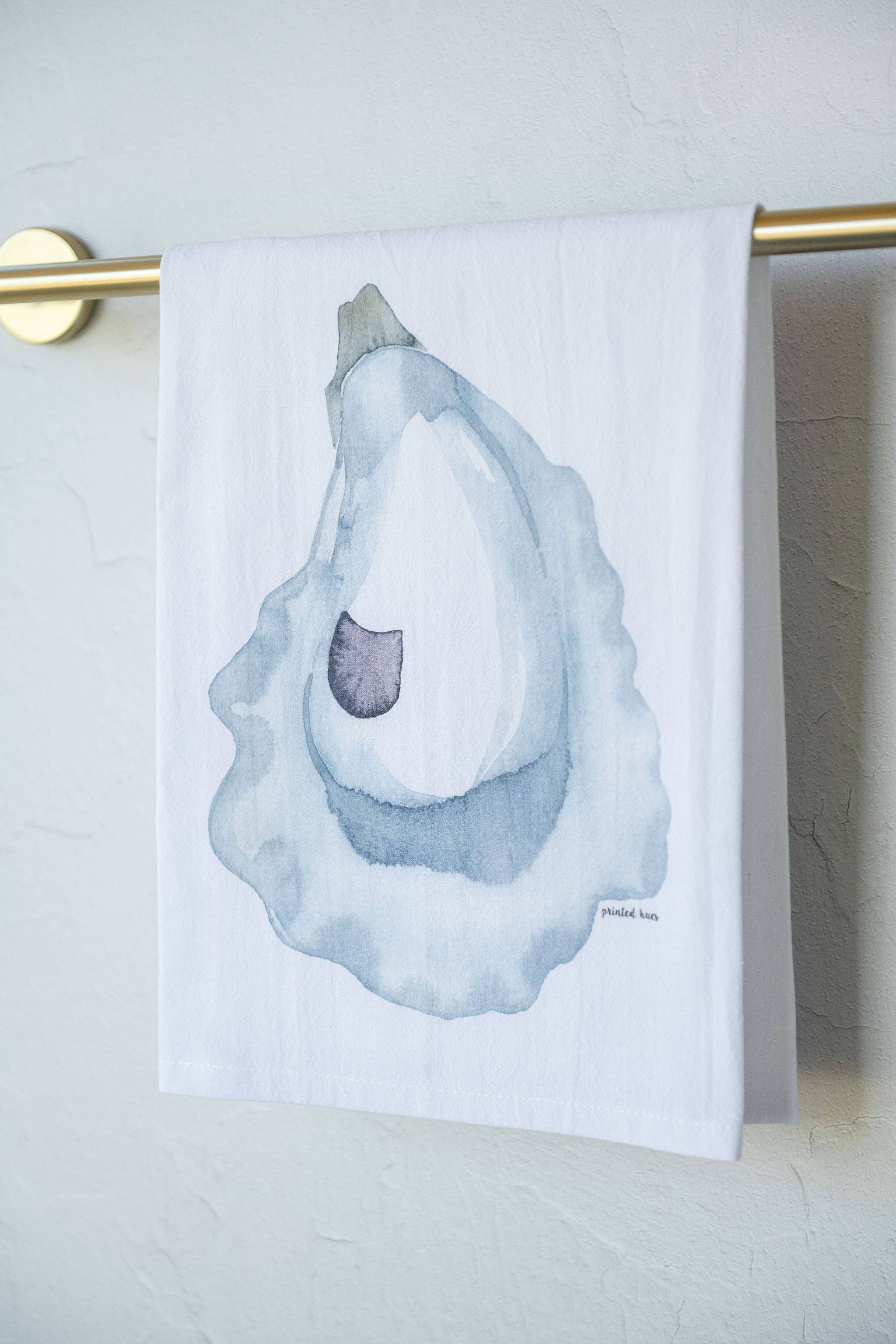 Flour sack tea towel, printed with the Carolina Oyster. • 100% cotton • 28x28 inches • Hanging loop on back upper corner Care instructions: machine wash cold, tumble dry low. No bleach.
