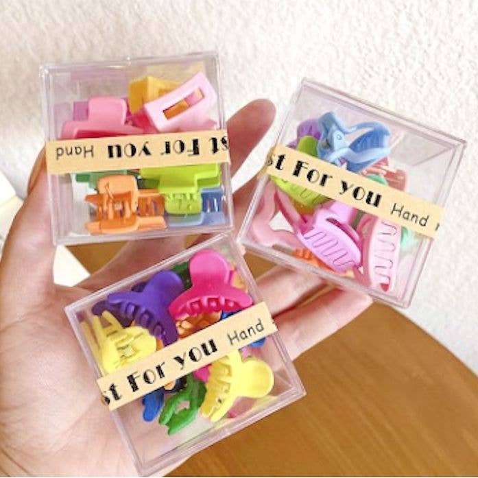 Mini Pack of 10 Flower Wavy Rectangle Hair Clips, neatly organized in a convenient case. Each clip features a delicate wavy, rectangle, charming flower design, adding a touch of elegance and playfulness to your hairstyle. Made from durable materials, these mini clips provide a secure hold for all hair types. The compact case keeps all clips organized and easily accessible, making it ideal for travel or everyday use. Product Details: Width: .75" - 1" length: .75" - 1"