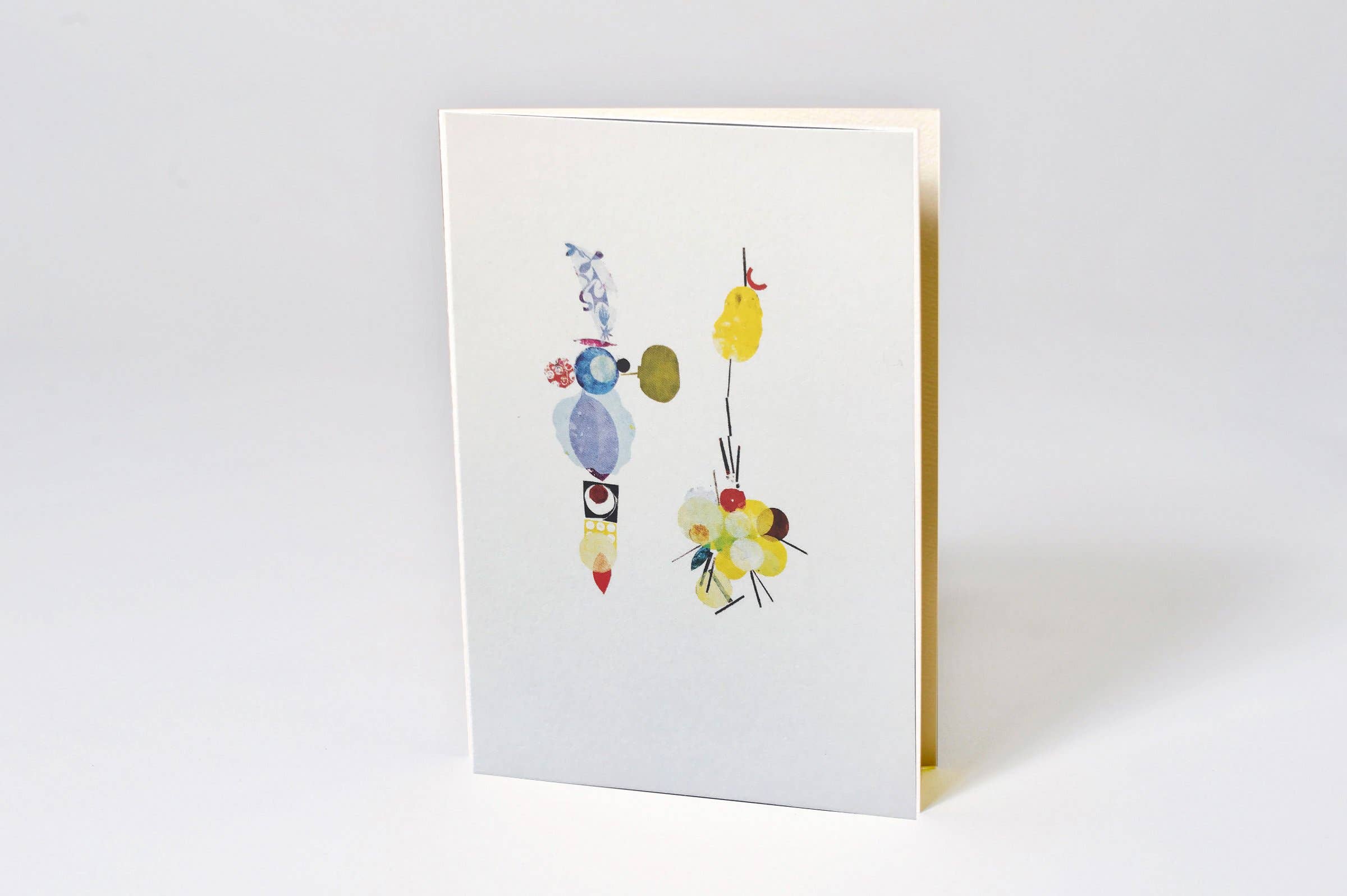 A2 folded card 4.25" x 5.5". Blank interior with logo on back. 100 lb. Cover weight, off white paper. Coordinating wrought iron grey recycled envelope. Card and envelope packaged in a clear cello sleeve.