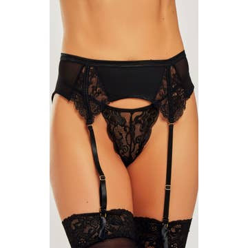 Black Garter Belt Set with Rose and Red Gems