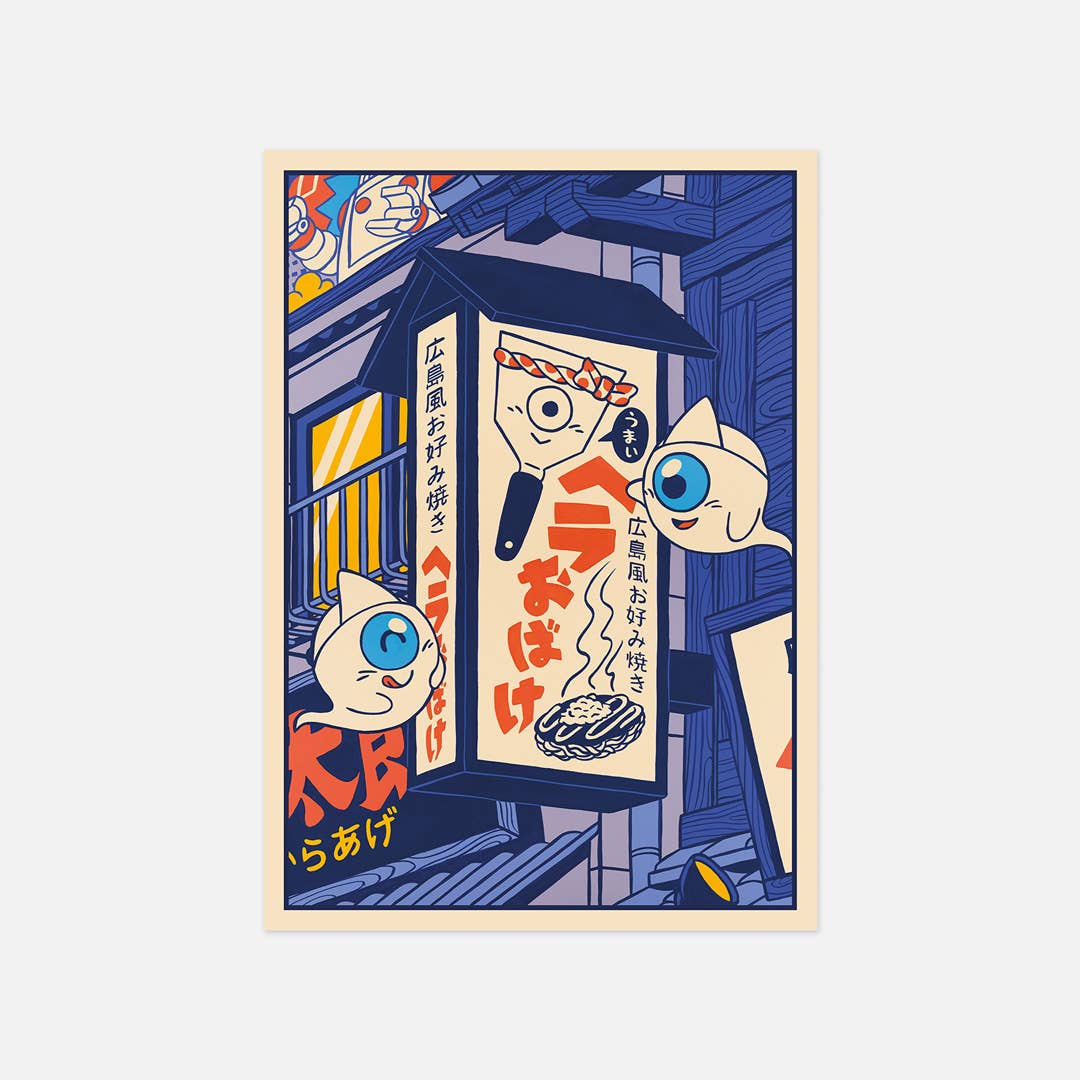 “Dinner in town 1/4 - Follow me!” Painting created for my solo exhibition Itadakimasu at Outré Gallery in Melbourne, Australia. This series of 4 paintings has as characters Yû and Rei, 2 little gourmet ghosts who head for a restaurant and make a few stops along the way. - 10.5 x 14.8 cm (A6) - Offset printing - 300gm2 recycled paper - Printed in France