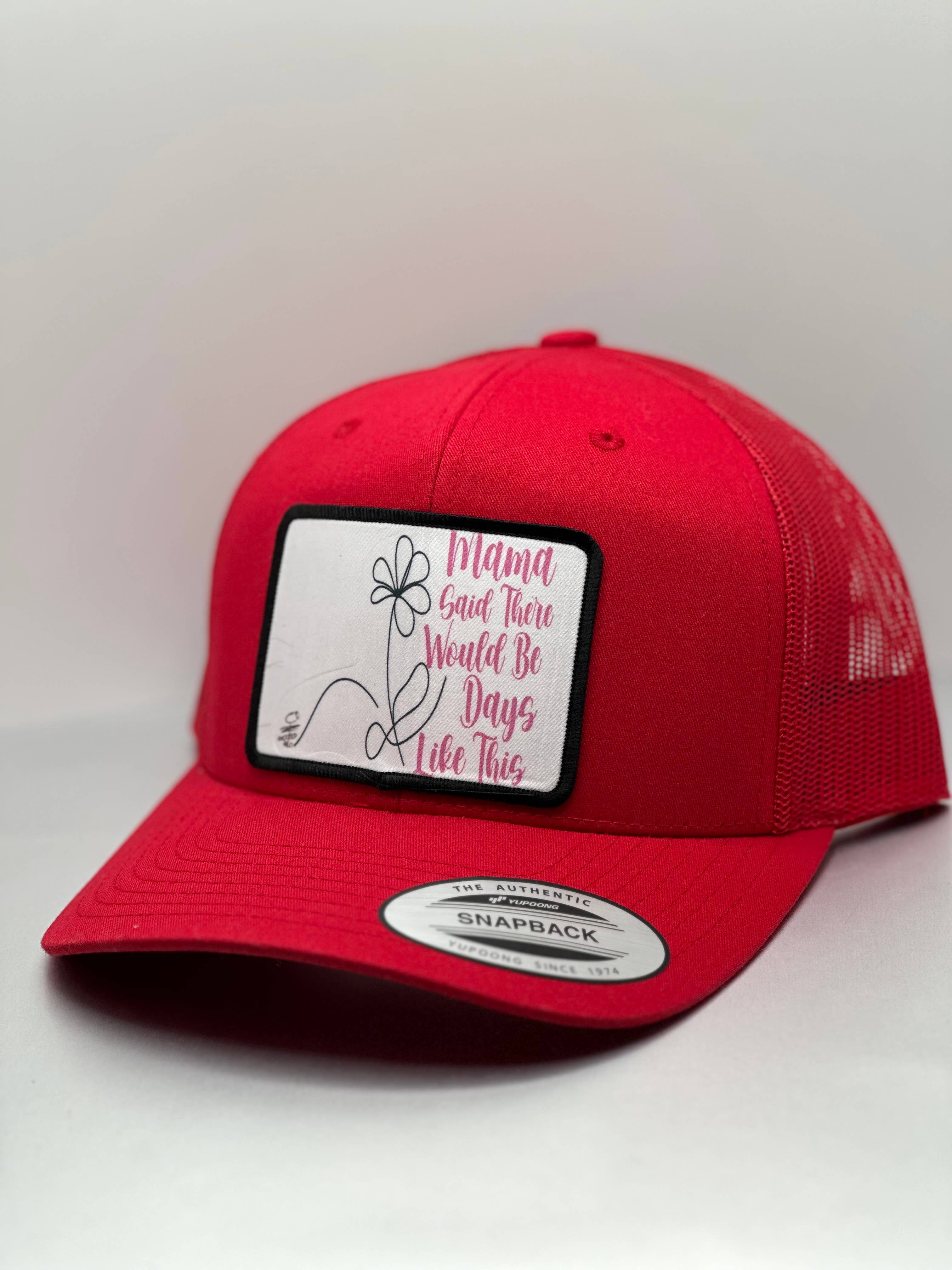 High Quality Snapback Trucker Hat. Make a statement of personality with our custom-made patches. You are now able to customize which color hat you want the patches on! So Fun!!