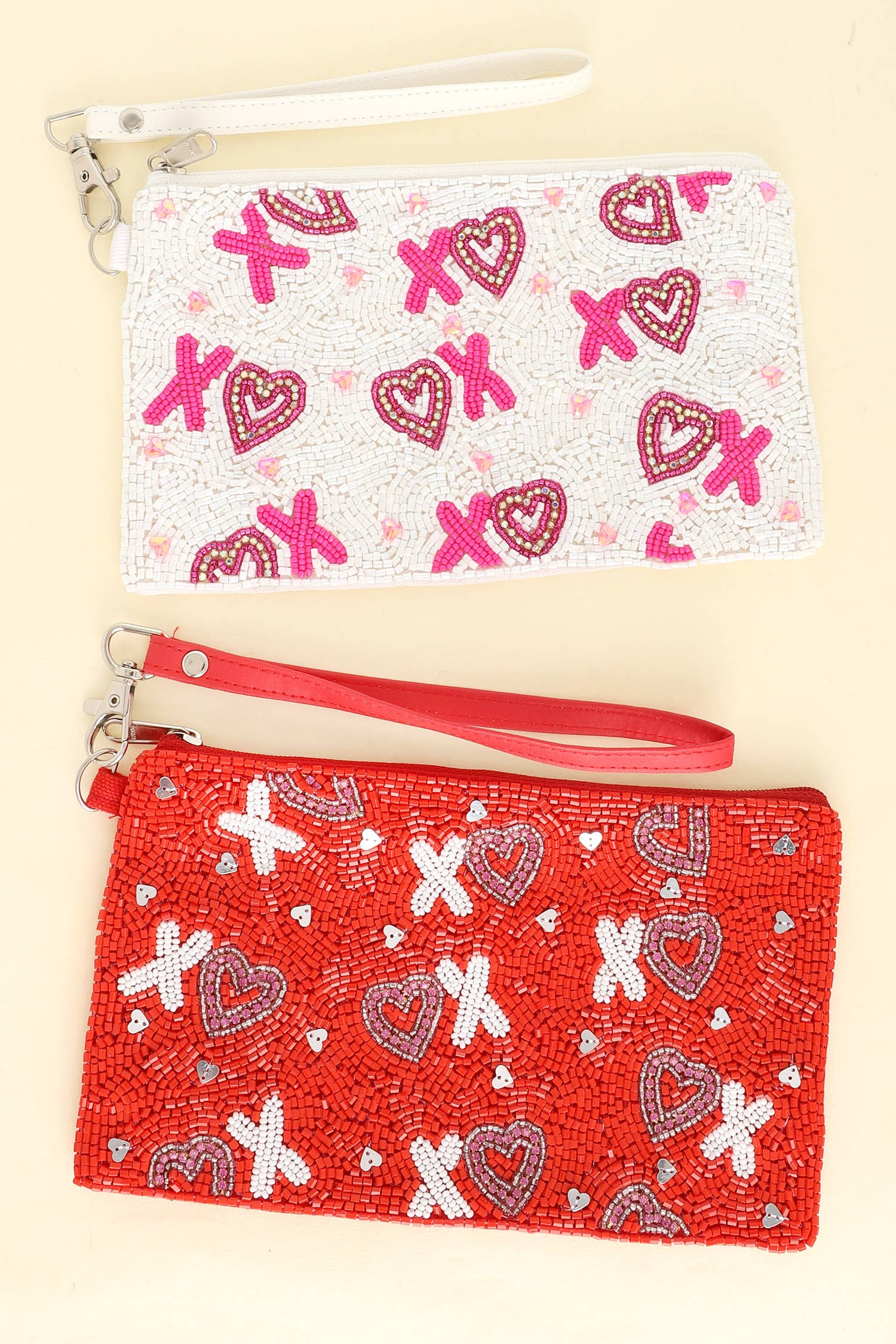 Wholesale Have a Heart Beaded Red Heart and Crown Coin Purse Key Fob