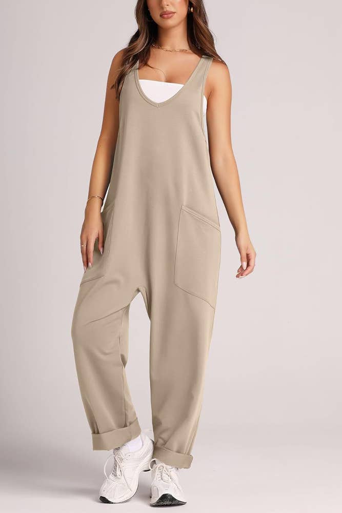 Features: * Daily Jumpsuit/Overall * 95% Polyester, 5% Spandex Hoodie Fabric * Fabric with Little Stretch * Classic Style * Solid Color * Sleeveless * String Shoulder * Casual Fitting * With Front Two Pockets and One Back Zipper Pocket * Fabric Breathable, Soft and Comfortable * Fabric Light Weight but Not See Sheer Package:  * Package include 1 * Ladies Jumpsuit Model Fitting:  * Model wearing size S  * Model Size:  Height - 68.9" Bust - 33"  Hips - 34.6" Waist- 24.4"  Note:  * We have different sales discount in 3%/5%/10% for our retailers, please feel free to shop  * Color may vary due to lighting on images, filter for the picture, different display.  * Please refer to the size chart  * Any problem please contact with our customer service first, we will try our best to help solve the issue.  Private Label Sew Acceptable  * Contact Us by Message  * Prepare the Label Art Work File in PDF or AI Format with Correct Size in Advance