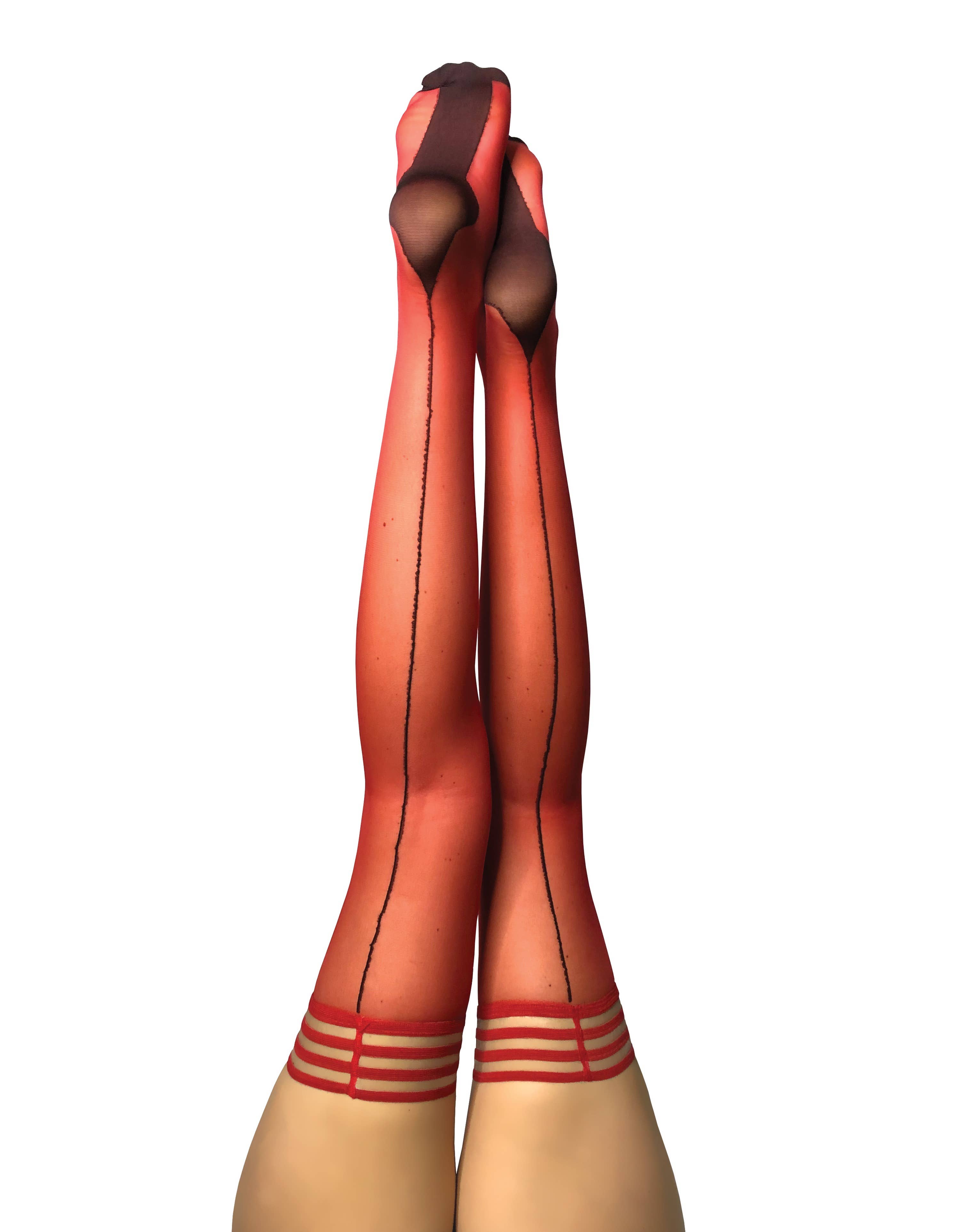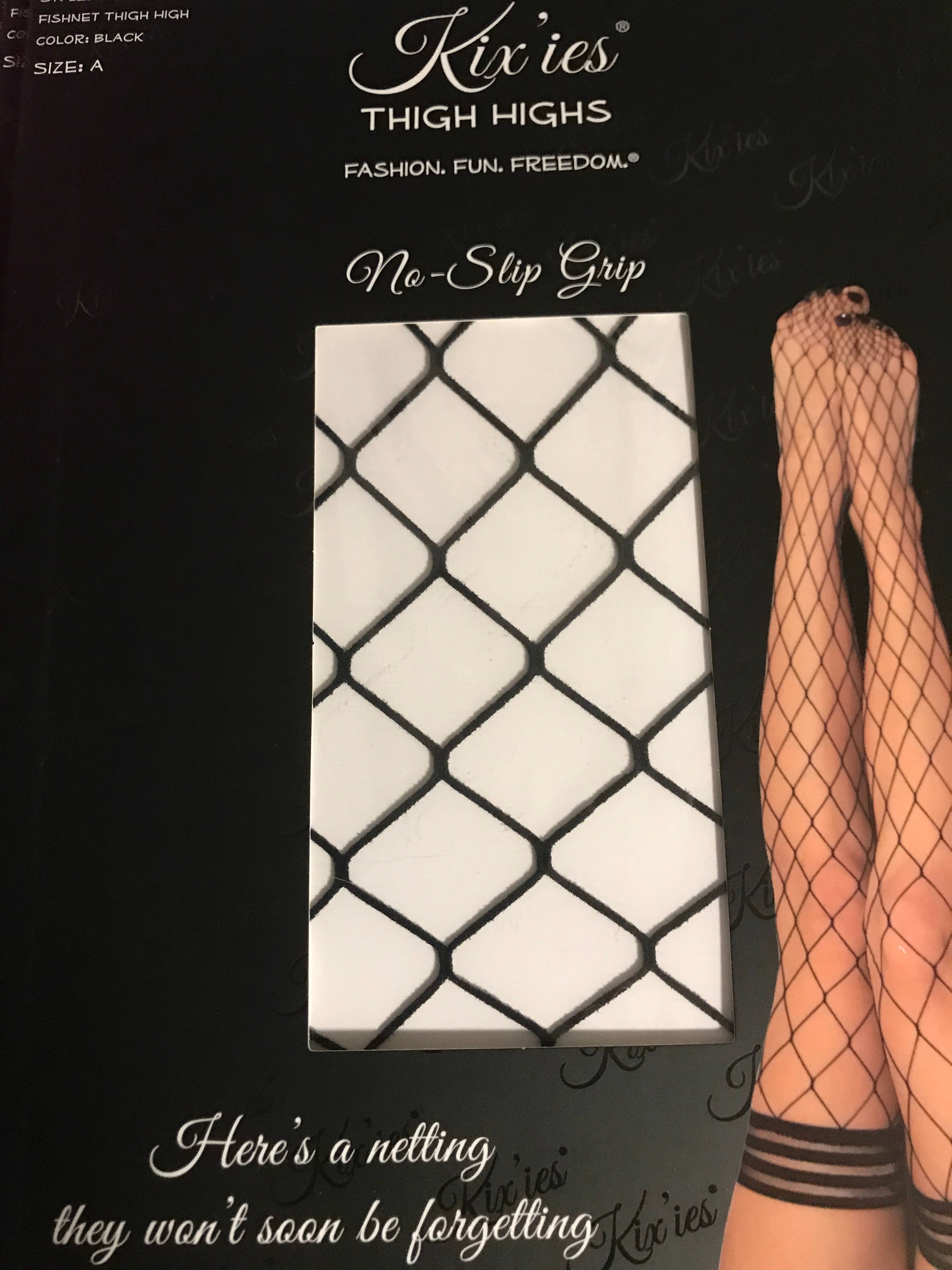 Flirty Flashback to the 1940s Polka Dot. Black, sheer, extremely soft, and perfect for any retro look or everyday wear! Kix'ies thigh-highs are designed for all-day wear, with a no-slip-grip. We offer Petite to Plus Size Stockings and are the #1 thigh-highs that actually stay up! Sizing: Measure by height first and thigh circumference second. Weight can be arbitrary when sizing for a thigh-high. We all carry our weight differently; be it in the tush, tummy or thighs – which have no bearing on finding the perfect Kix’ies® fit! Time to kick those binding tights and outdated hosiery to the curb!
