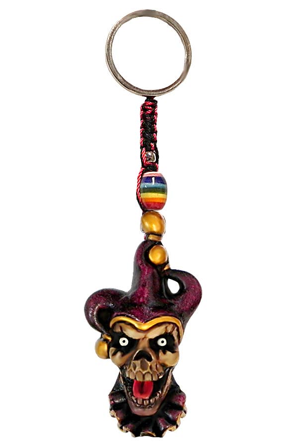 Handcrafted durepox resin figurine keychain of a smiling bearded gnome head wearing a hat. Braided macramé, large bead, and metal keyring attached. Link keychain to your keys, wallet, backpack, or purse! • Item code: KC-0503 (GNOME) • Sold in assorted macrame and bead colors. • Approximately 2.2" x 1.8" x 0.8" (Figurine) | 3" length (String/Keyring). • Silver metal keyring attached. • Materials: Resin, String, Bead, Metal • Handmade in Peru. Contact us or search our catalog to order custom display(s) of this product. Disclaimer: Each one of our products are handmade and unique. When ordering wholesale, customer will receive ASSORTED COLOR, AND/OR PATTERN variations of the product.