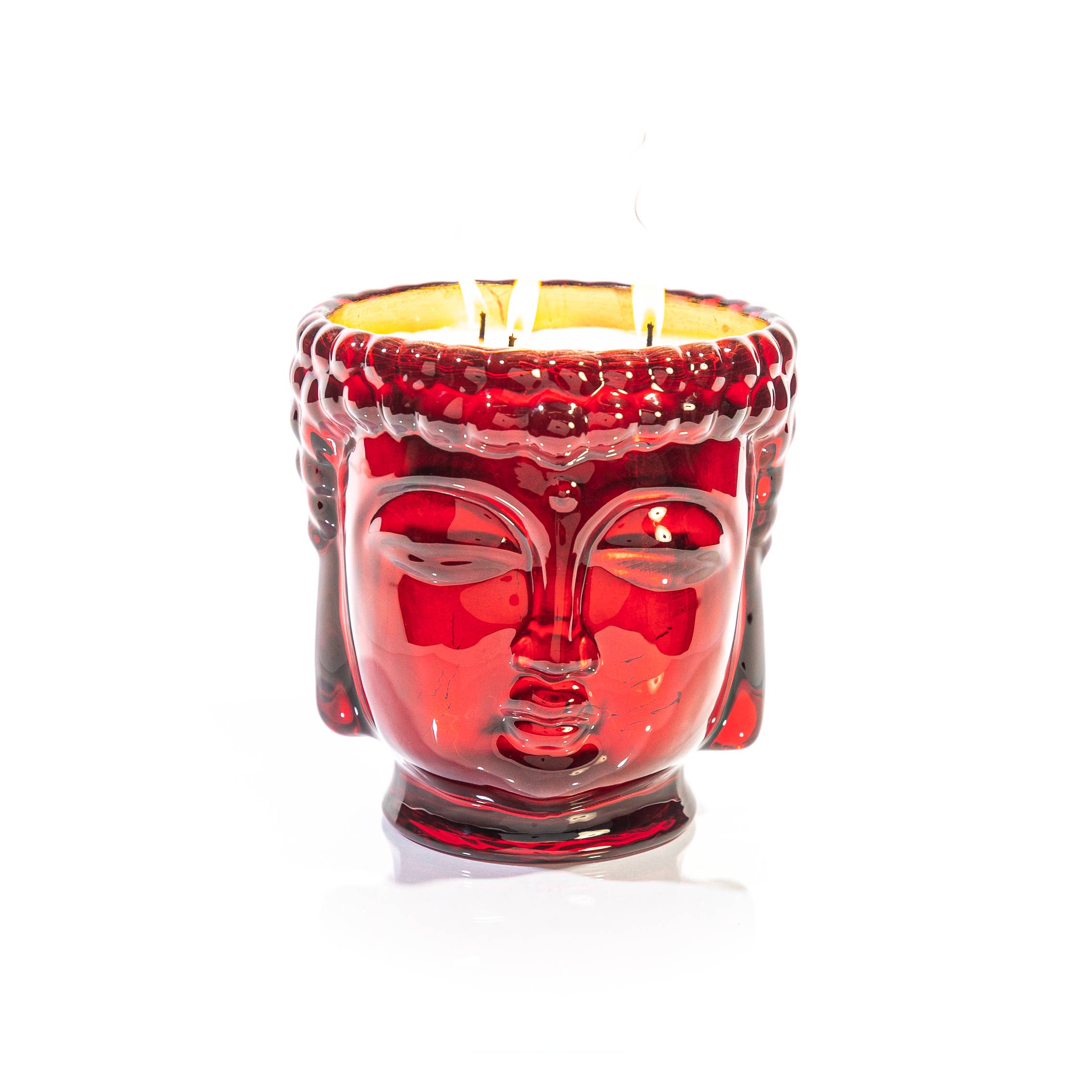 Elevate your home decor with the captivating story and mesmerizing scent of our Thompson Ferrier Gold Buddha 3-wick scented candle. Each candle is hand-sculpted and hand-poured in the USA with only the finest essential oils curated by Swiss perfume house Givaudan. Our signature ceramic vessel, designed in our NYC office, is a symbol of the journey to inner peace. Filled with a proprietary wax blend and finished with 3 wicks, this candle is a work of art that provides a clean and long-lasting burn. The bold gold design adds a touch of luxury to your living room or bedroom, and the carefully curated fragrance of myrrh and redwood will transport you to a realm of tranquility and harmony. Fragrance: Palo Santo Fragrance Notes: Palo Santo, Tobacco Flower, Whipped Vanilla, Creamy Woods, White Birch, Timur Pepper Candle Burn Time: 220-240 hours Wax Weight: 40 oz / 1200g Vessel Size: 6.5" x 6.5" x 7" / 16.5cm x 16.5cm x 17.8cm
