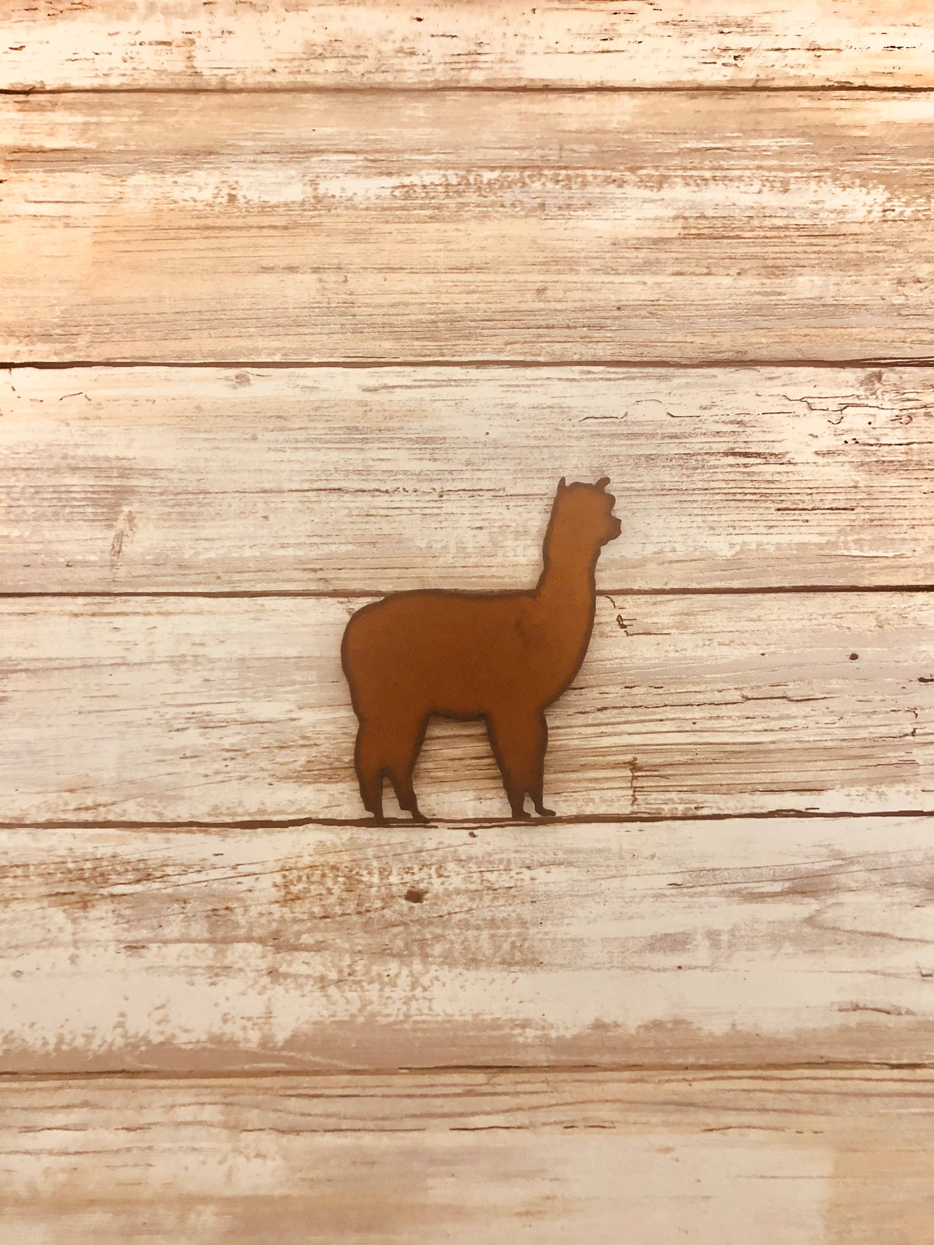 Alpaca ornament. 3.75 H x 3.25 W This Ornament is made with 18 Gauge Steel. Do to the Natural Rusting Process color may vary slightly, Made In Prescott Arizona