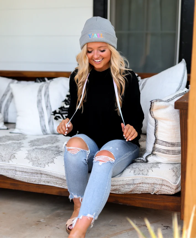 Material: 80% Cotton/ 20% Polyester Solid French Terry Top of the Hoodie & The Hood Waffle French Terry Bottom of the Hoodie Stretchy Ribbing on the Hem & Sleeve Cuffs Screen Print on the wearer's left side of the hood Oversized Fit- Order Normal Size - about 1 size bigger than normal JLB