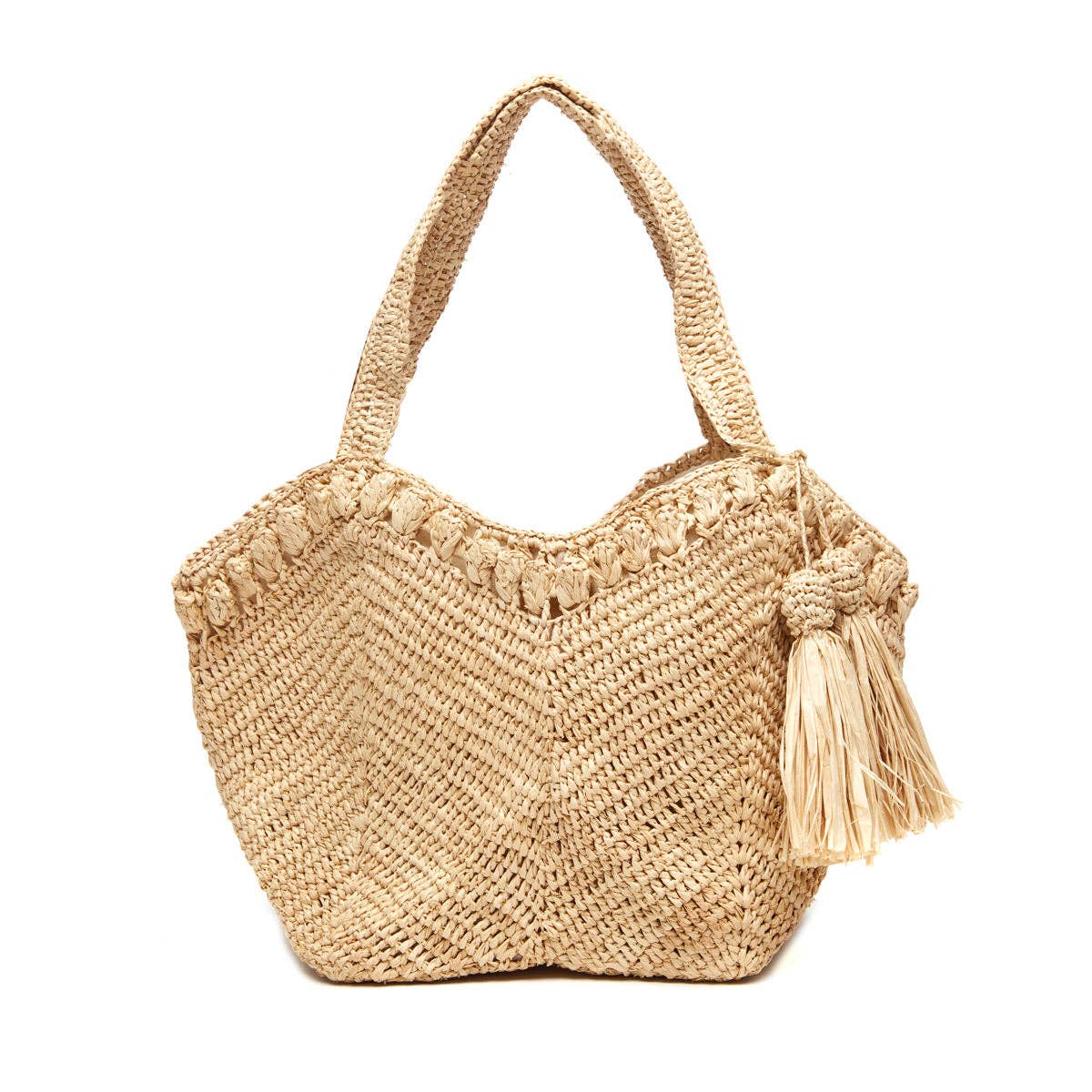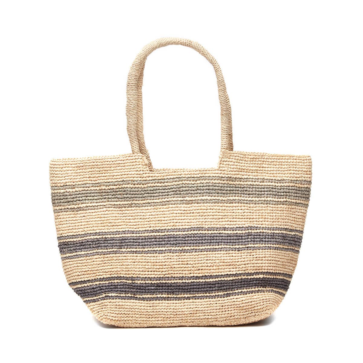 Pretty ombre stripes and a classic comfortable silhouette make our new Mira tote the perfect everyday straw tote. * 100% crocheted raffia * Cotton lining, inside pocket, snap closure * Leather shoulder straps * 20.5”x 15” x 7” with 10" Strap Drop- Approximate dimensions, each piece is handmade