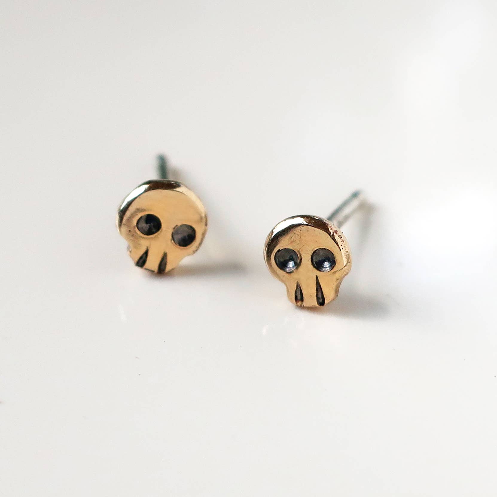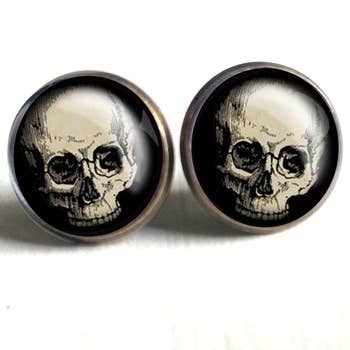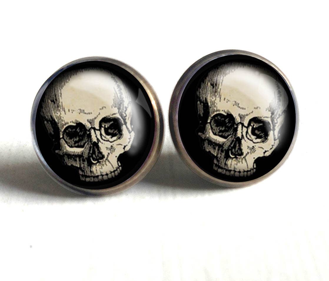 Blue Skull little earrings - stainless steel posts with rubber backs. Super light, cute and comfy! Designed and handmade by Ravenridge Hidden, Port Orchard, WA. Approximately 1/2 inch diameter. These are handmade and may vary slightly in shape or color as they are all unique. Size: One Size.
