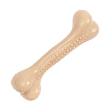 Got a chewer who chomps like a champ? We’ve got the bone to match! Made from our newest sustainable plant-based material, the Barkin’ Bone has a tougher, more durable texture to keep chew-hounds happy day in and day out. Wood pulp, bamboo, and honeycomb resin packed with a beef scent and flavor to make it enticing. This chew stick is packed with irresistible scents and tastes to keep your dog entertained to keep your dog entertained without the risk of real bones and natural sticks.