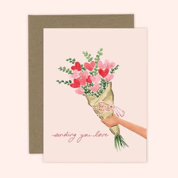 4.25 x 5.5 (A2) card on premium felt card stock. A2 sandy tan envelope. All of my cards are designed, printed, scored and folded by us. Blank inside for your own message. Pack of 6.