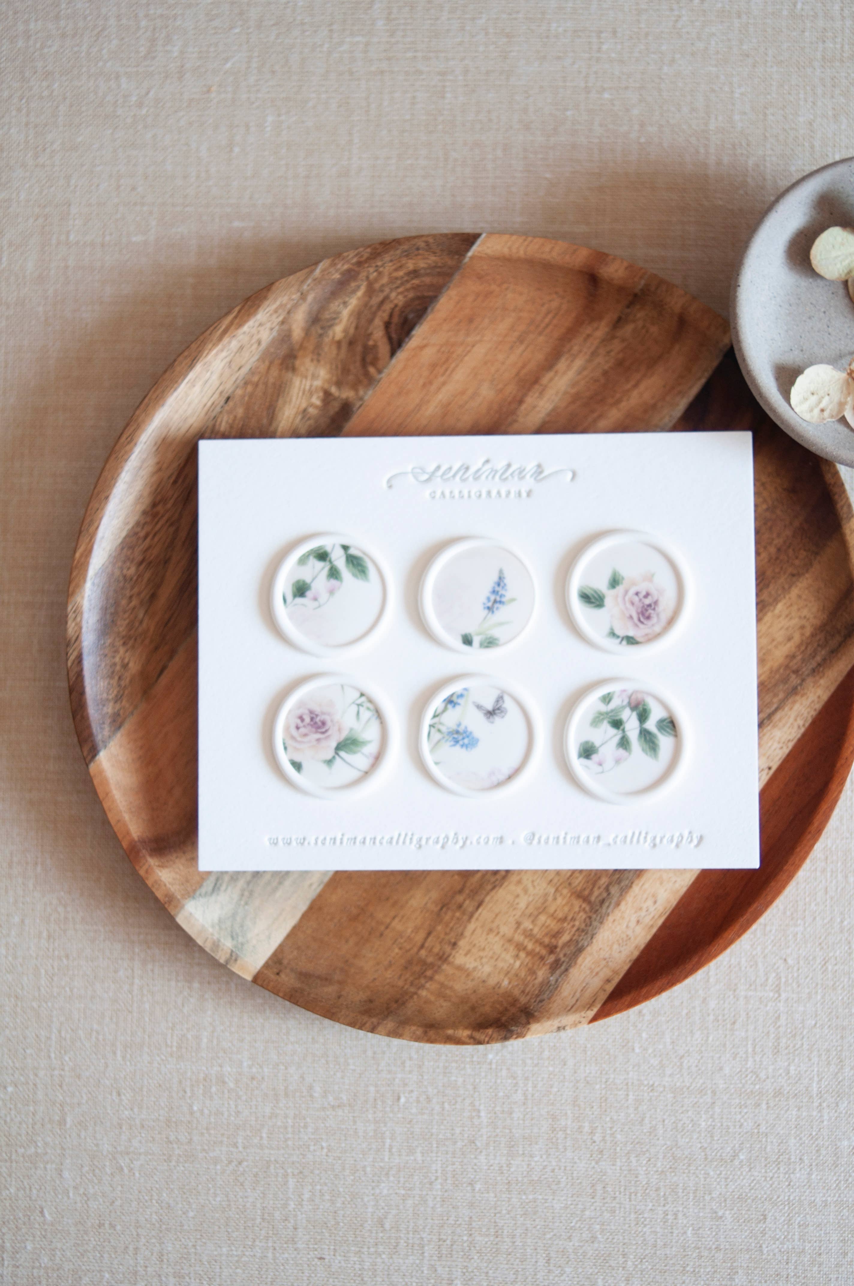 The finishing touch to your heartfelt stationery. Set of 6 pink, professional grade, self adhesive wax seals garnished with actual rose petals. Packaged in a clear pillow box. All of our seals are hand stamped with love in our Burbank, California studio. When mailing, we recommend hand-cancelling or the use of an outer envelope to prevent any tearing due to modern mail sorting machines. Hand sorting mail is a service offered by most Post Offices and is a great way to ensure your seals stay intact upon delivery.
