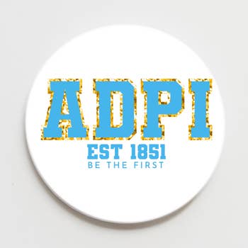 These sorority buttons are printed with our exclusively designed and licensed Go design. A colorful way to pin your sorority pride! Available in the following sororities: Alpha Delta Pi Alpha Omicron Pi Alpha Chi Omega Chi Omega Delta Delta Delta Delta Gamma Kappa Delta Kappa Kappa Gamma Phi Mu Pi Beta Phi Zeta Tau Alpha Delta Phi Epsilon Delta Zeta Gamma Phi Beta Alpha Gamma Delta Alpha Phi Alpha Xi Delta Alpha Sigma Alpha Alpha Epsilon Phi Alpha Sigma Tau Theta Phi Alpha Phi Sigma Sigma Kappa Alpha Theta Sigma Delta Tau Sigma Kappa Sigma Sigma Sigma
