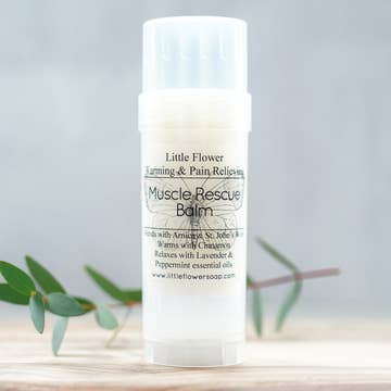 The Little Flower Muscle Rescue Balm is a much-loved, all-natural, sore muscle remedy, packed with generous helpings of healing ingredients. This treasured recipe was meticulously crafted by "Dr. husband" (thanks dear) for use after a long day working in the garden, hiking to a view, or stirring and cutting big batches of soap in our case. Size: 2.5 oz. Like tiger balm this muscle rescue balm is a natural muscle relaxer with arnica and st. johns wort to reduce inflammation that soothes sore tired overworked muscles and helps speed up muscle strain recovery. You can use it for anything that ails you. Happy customers have reported using it after marathons, yoga, sports practice and more.
