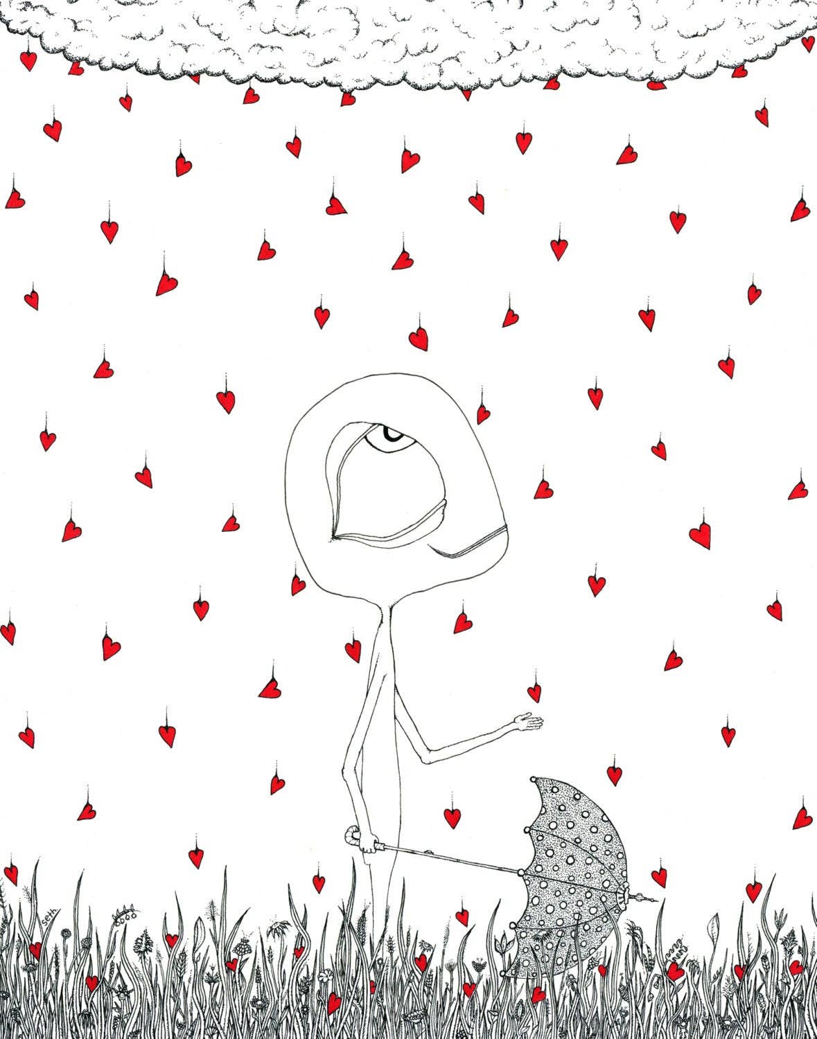 This is a print of an original illustration with microns and sharpies. Printed on matte finish fine art paper with archival ink. and i'll ship it very safely...promise.