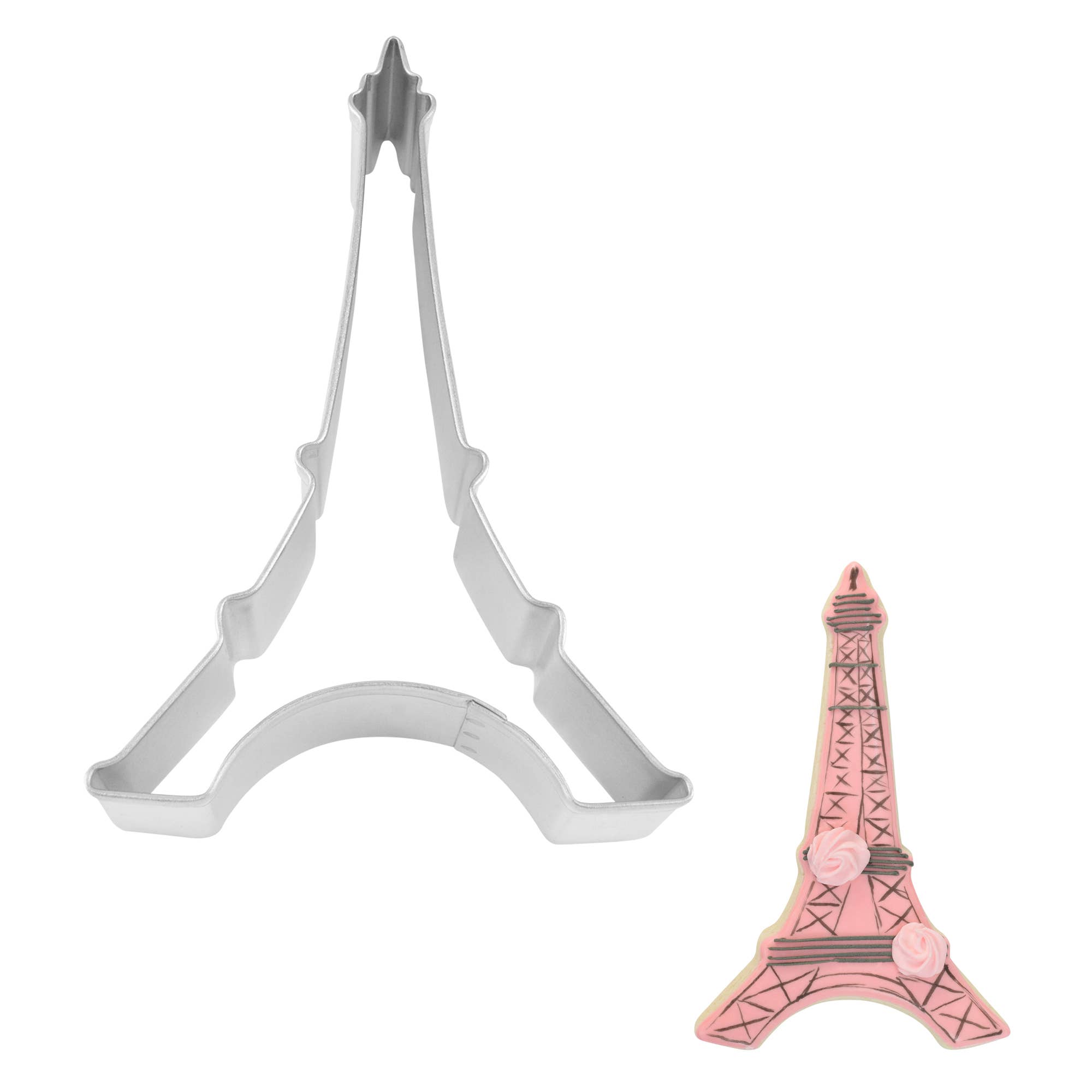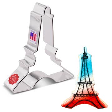 Eiffel Tower Cookie Cutter, 4 3/4". At Ann Clark, America's leading cookie cutter manufacturer, we know cookie cutters and the bakers who use them. Made of USA steel, each cookie cutter boasts the rigidity and precision edges required to cut through cookie dough and soft foods, and to last for generations. We test our products yearly to ensure that they are food safe. The techniques we have developed over three decades of manufacturing have set us apart, permitting us to create modern, complex shapes with crisp corners and intricate details.