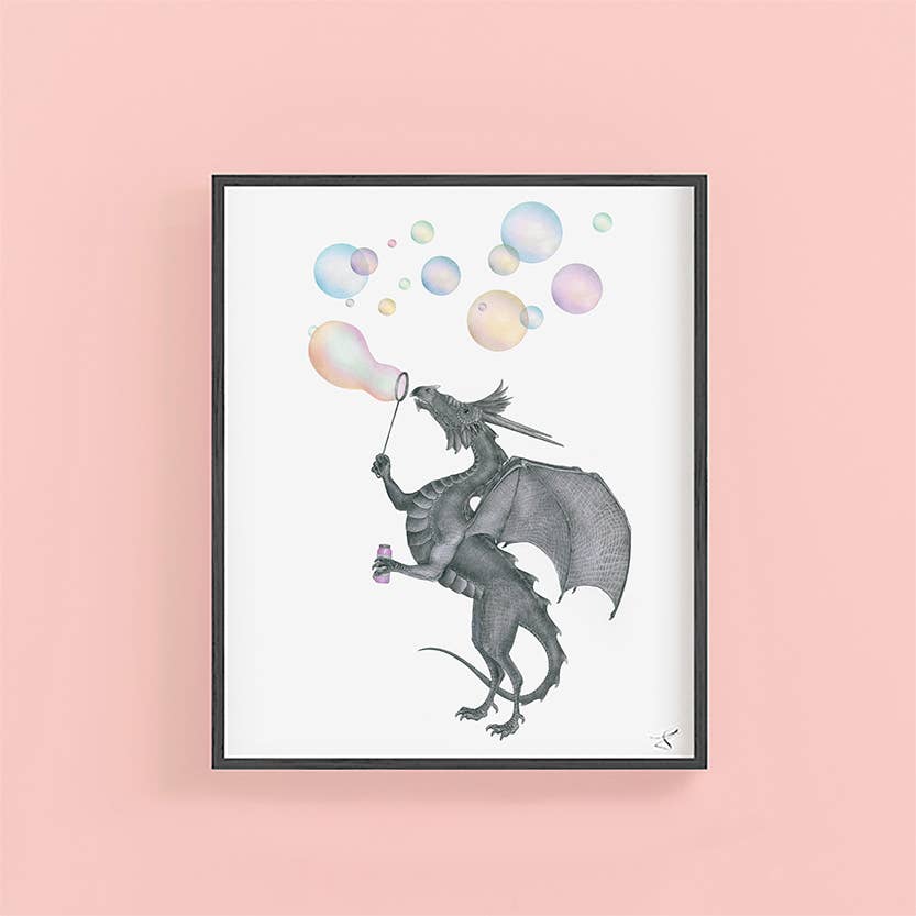 The Cloud Birds are quite a tennis team. They practice with a strict regime. But sometimes they hide from their friend on his descent from the west end. They mean no harm, el Senior Ave Azul. But there is no charm in talking with your mouth full. PRINT DETAILS * Archival, Acid-free matte paper, Thick, Durable * Museum-quality * Printed in USA FRAME DETAILS * Alder, semi-hardwood frame, made from renewable forests * Available in black or white * .75” thick * Acrylite front protector * Hanging hardware included * Made in USA