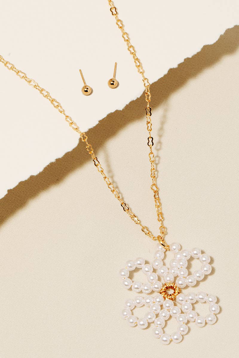 Housed in a beautiful floral Saachi box, our stunning and timeless Pearl Necklace and Earring Set make the perfect gift. The beautiful glistening pearl earrings and matching necklace are uniquely asymmetrical, making them perfect for the woman with style. This is the ideal finishing touch on your formal wear look. "-Material: 50% Zinc Alloy, 40% Freshwater Pearl, 10% Iron -Earring Size: 2.5" x 1" -Necklace Size: 16" with 3" Extender -Earrings: Hook Back -Necklace: Lobster Clasp "