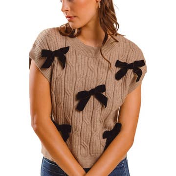 * Features a charming bow pattern for a stylish touch. Crafted with high-quality fabric for comfort and durability. Unique buttoned side design adds a trendy twist. Versatile cropped sweater vest for any occasion. *Brand labels are not included by default. If needed, please add them via this link ($0.50/pc): https://www.faire.com/product/p_kzks8vegvk