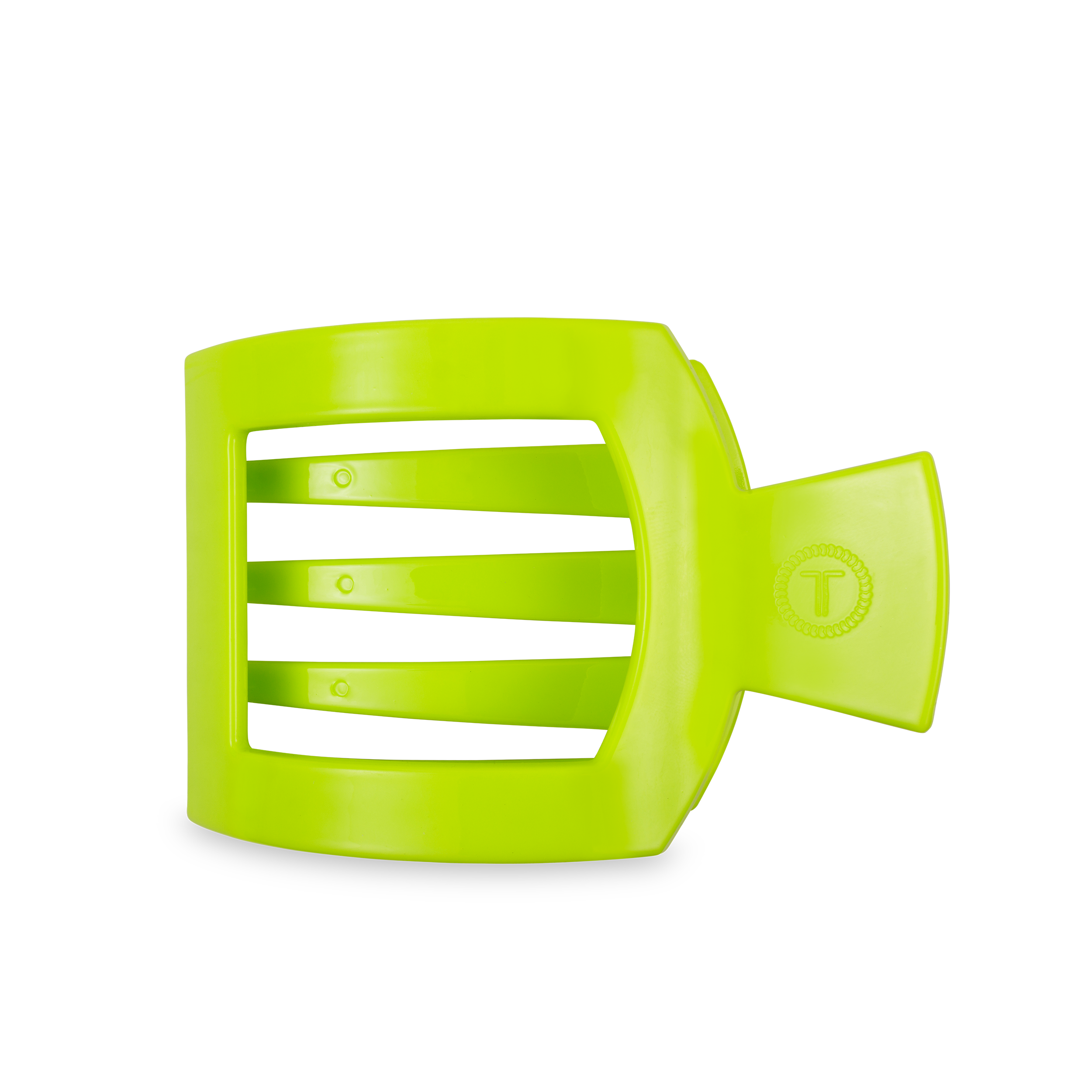Lay flat and relax with the new TELETIES Summer Brights Large Flat Round Hair Clip in Green. This hair clip is designed to allow you to lay back flat, do yoga, or sit comfortably in a seat with a headrest, and it is made with the same material that is nearly unbreakable. Lay down flat with comfort Bendable teeth for a secure yet gentle hold Lightweight, durable, and hair-friendly Perfect for all-day wear—from sunup to sundown The large size is great for thick hair. Sold as an individual unit. The large size is 4.25 inches long.