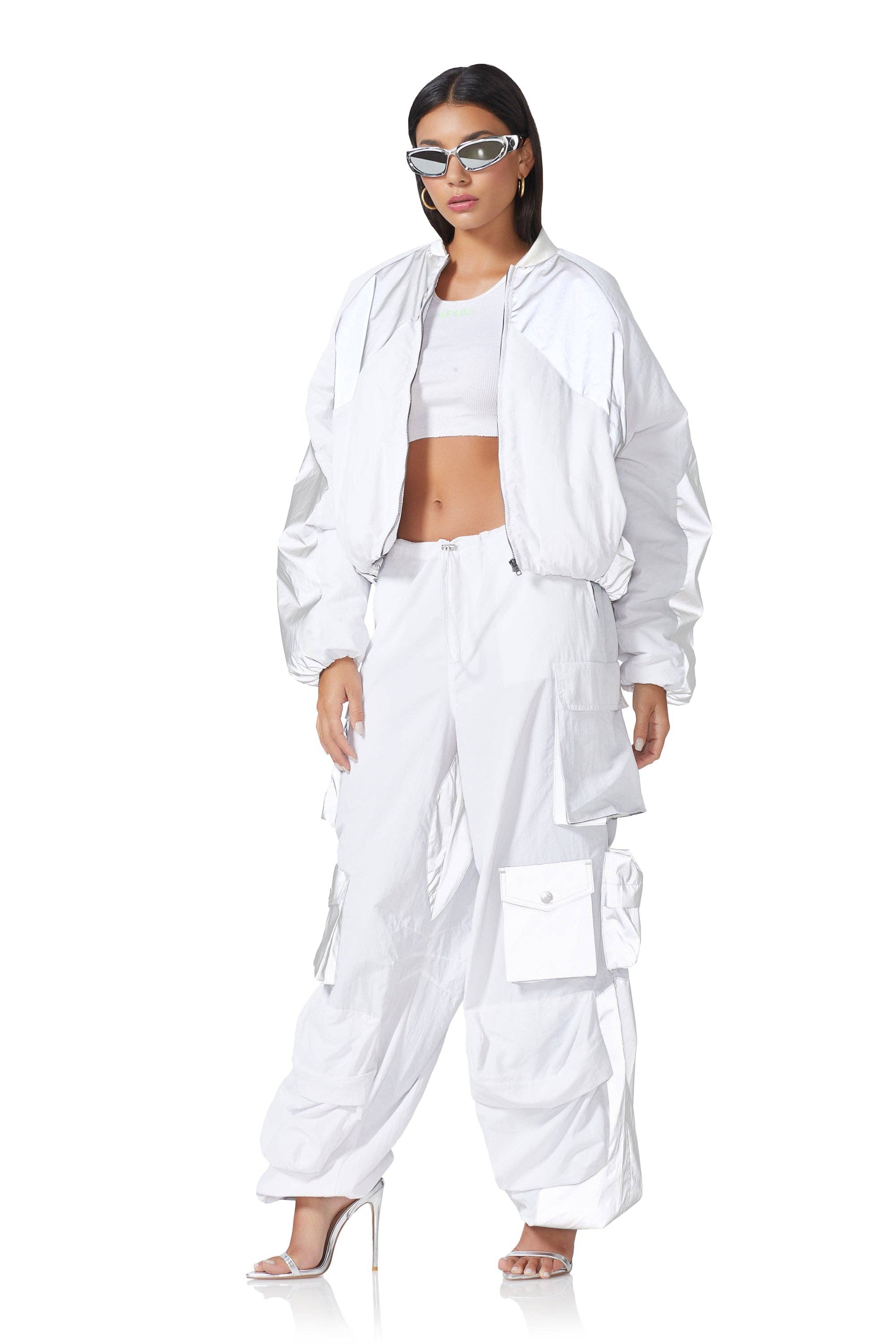 parachute pockets long pants, drawstring baggy long pants • 100% polyester • closure type: drawstring waist • details: drawstring pocket • non-stretch