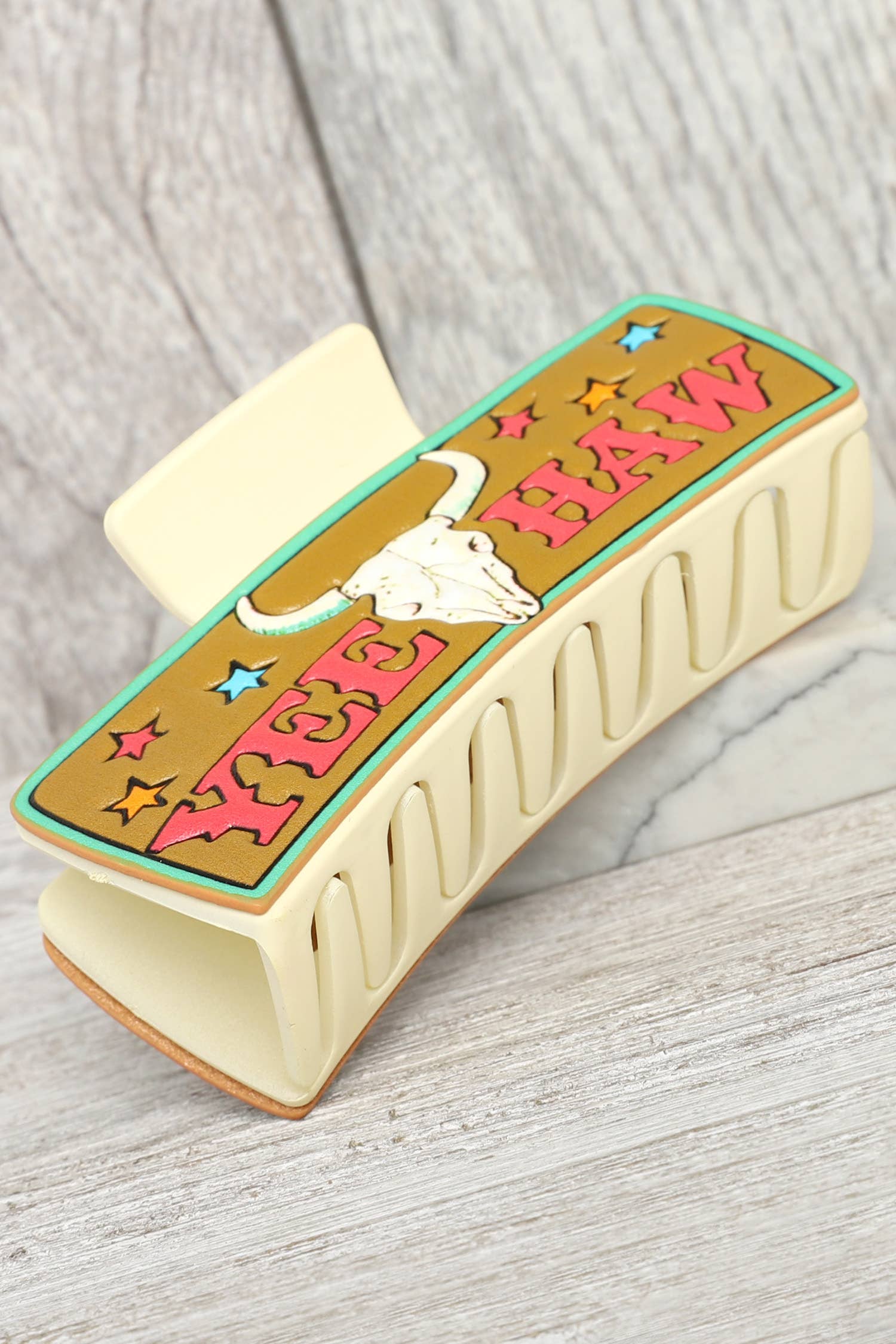 Elevate your everyday style with our Western Printed Hair Clip from UNISHE. Designed for the fashion-forward woman, this accessory is a perfect blend of streetwear aesthetic and missy fit. Ideal for the fall/winter season, its unique print will add a pop of style to your ensemble. Orders may be shipped from our USA warehouse or China factory based on inventory status. We cover extra shipping cost and duties to USA if shipping directly from China factory. Our default lead time is 11-14 days.