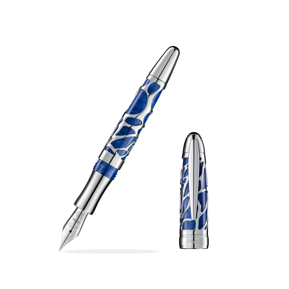 This 6.25" black pen is decorated with a series of beads alternating between blue and silver. The pen contains black ink and is refillable. If you wish to personalize this pen with beads of your own, the existing beads can be easily removed. Simply unscrew the end cap and slide the beads off the threaded rod.