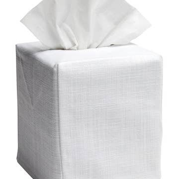 Enjoy this 100% European linen embroidered tissue box cover. It is a perfect way to dress up any room and hide the unsightly tissue box. Fits a standard size tissue box. Embroidery designed by Sonia Showalter.