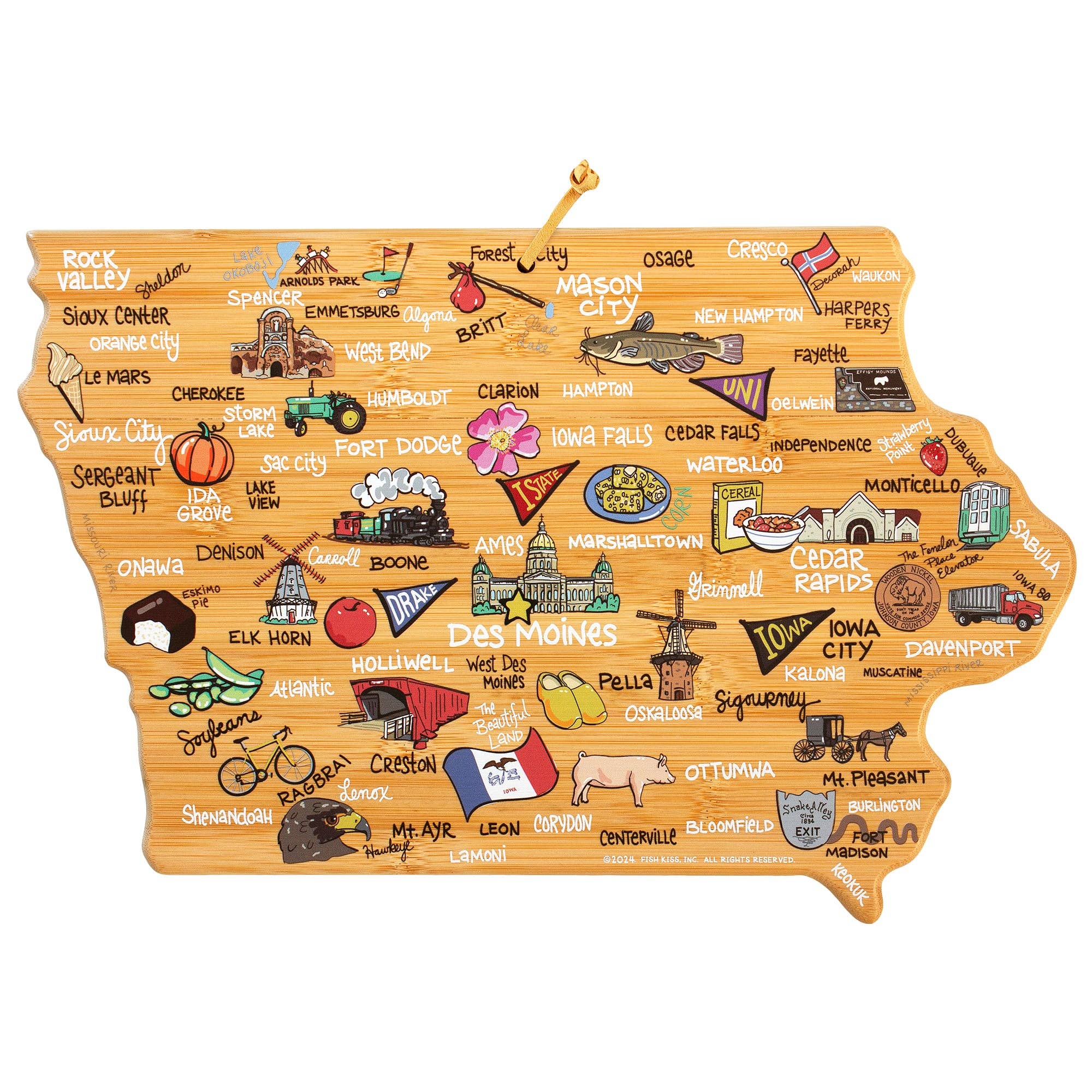 Destination Iowa Cutting Board with Engraved Artwork