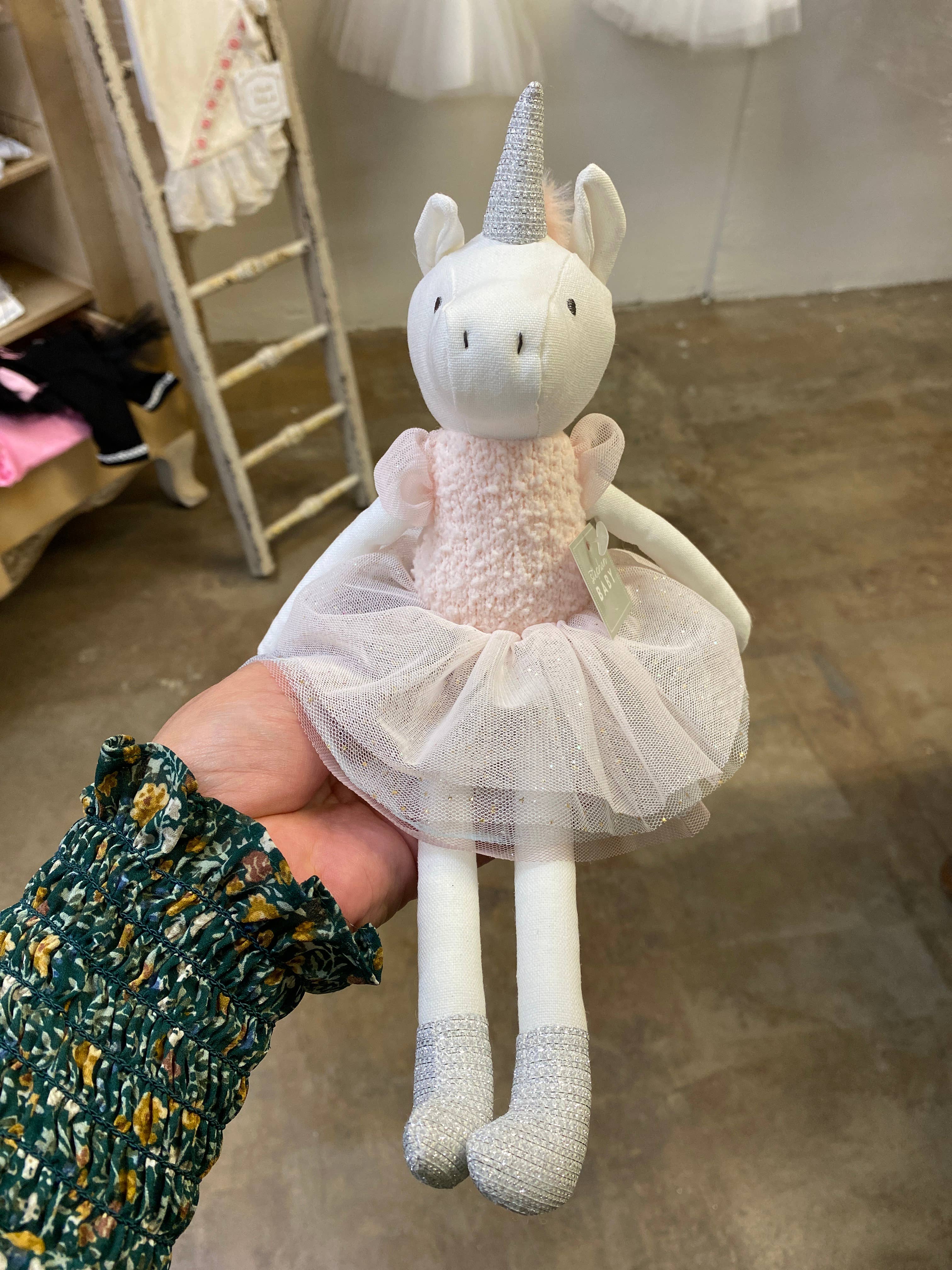 Make baby's first doll special! Ultra soft and machine washable, she will offer happiness for years to come. • Material: Polyester Plush • Size: 8.5"L • Care Instructions: Machine Wash Cold. Tumble Dry Low.