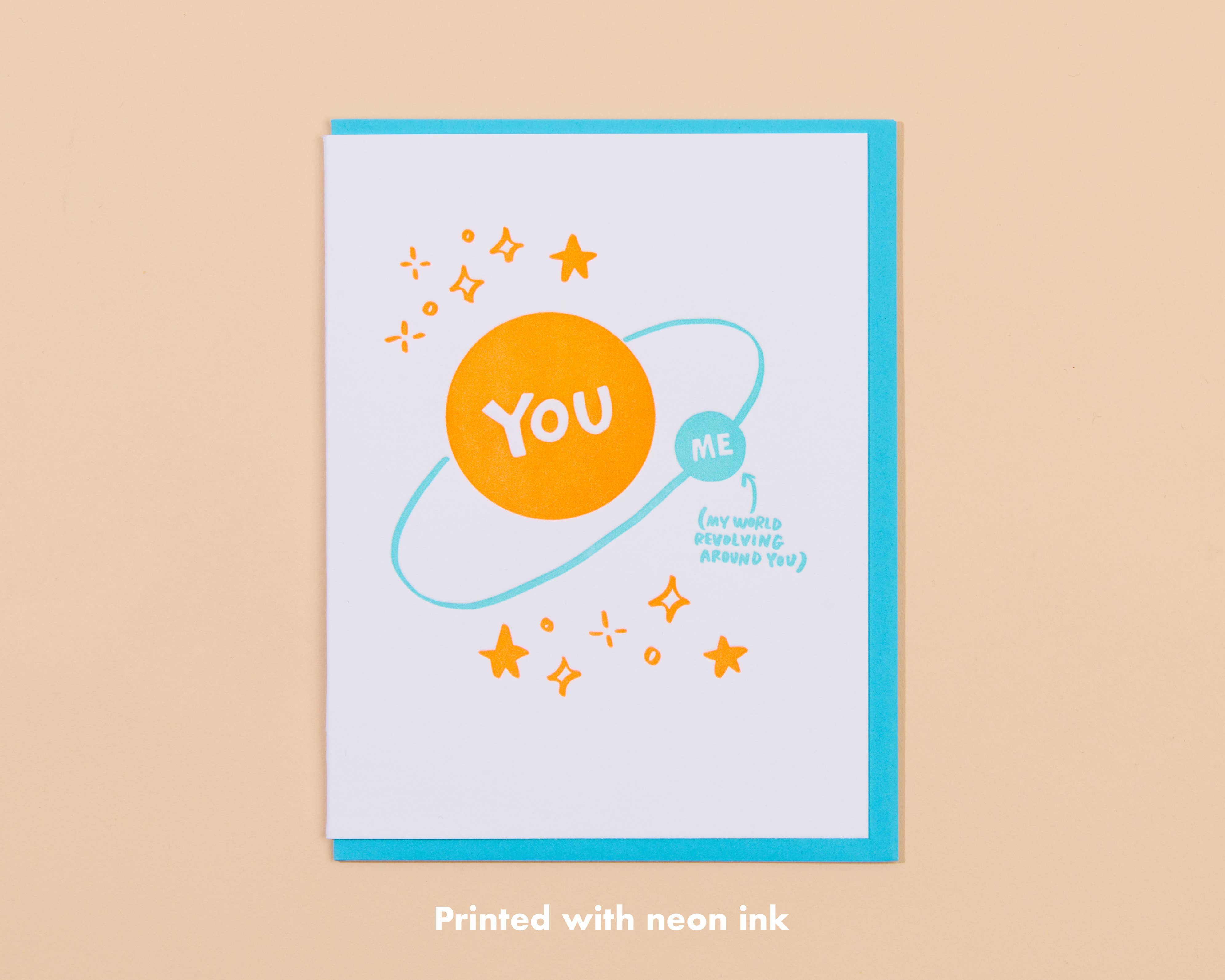 For all the space lovers out there Details: A2 size 5 1/2" x 4 1/4" when folded / letterpress and foil / comes with a gold envelope / letterpress printed with foil in the USA