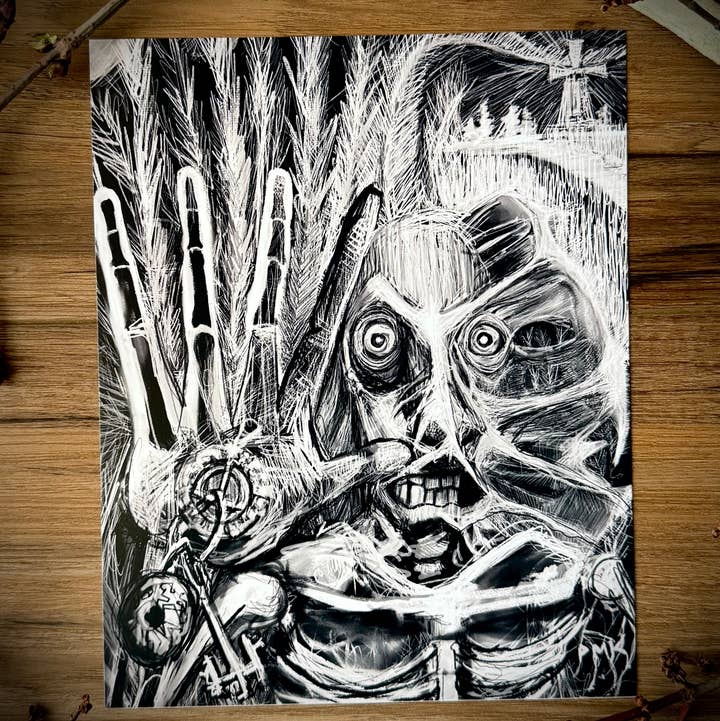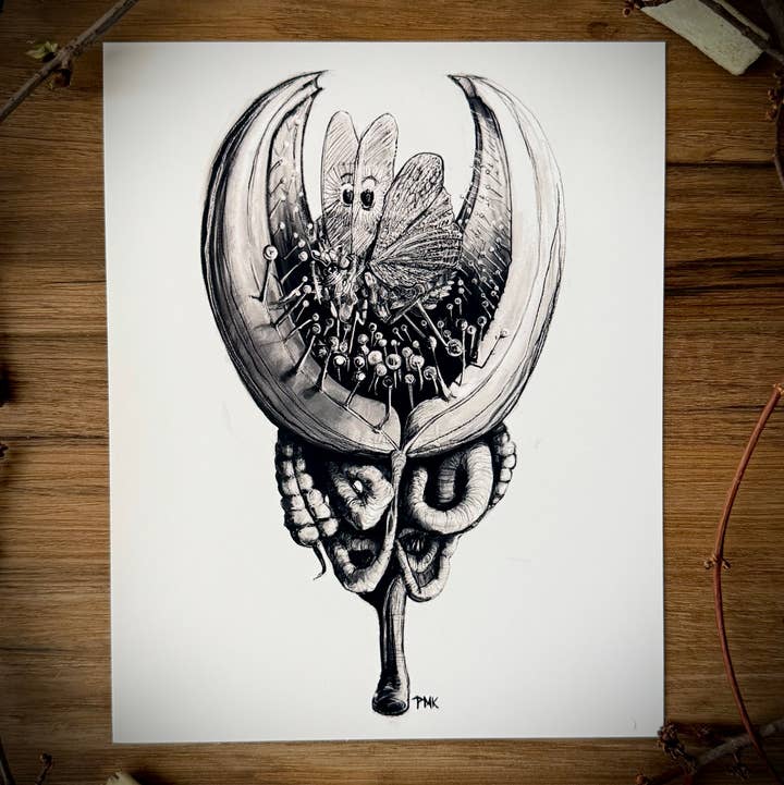 Do you have a flair for the spooky side? Blood Vessels Harvestors is a colorful and surreal artwork designed by me, Perry M. Kyser, that's perfect for the homes of people who love horror, fantasy or darker decor. This print is on high-quality cardstock with a sturdy backing board, making it a great choice for anyone who loves original art with a gothic twist. A must-have for anyone who loves horror, goth style, or unique and memorable home decor. *Frames not included