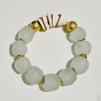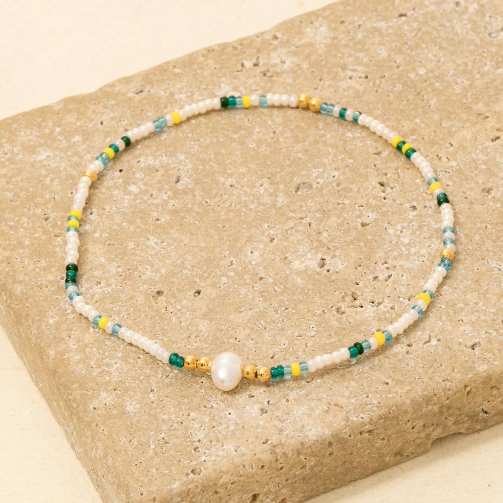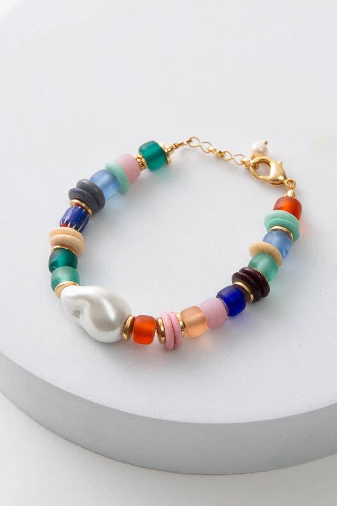 Add a sweet pop of color to your arm with the Pastel Pearl Bracelet, crafted with sea green Glass Beads, a lustrous Pearl, and a shell beads from India. Perfect for any occasion, this unique bracelet adds the perfect touch of color to any outfit. Style made with Love by Artisans in India.