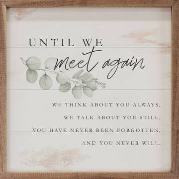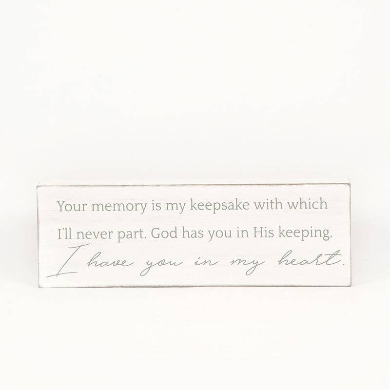 7x4.75x1.5 wood framed sign ("Treasured in my heart you'll stay, until we meet again someday.") white/natural - From our Remember When Collection Back in Stock!