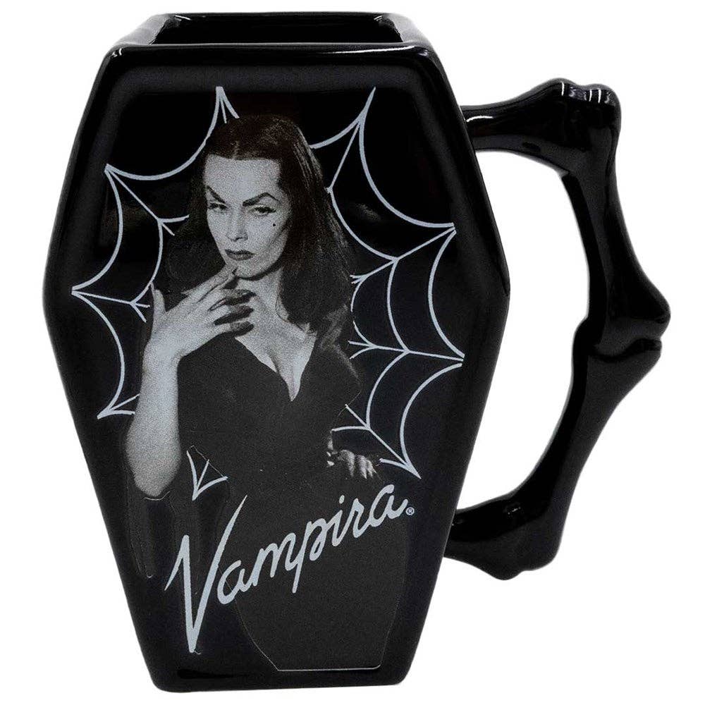 Officially licensed Vampira portrait ceramic vase by Kreepsville, a fine addition for your home or office space to hold your favorite batch of roses or everyday necessities, approx 7.5" L (19.5cm) x 6.5" W (16.5cm).