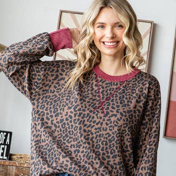 WHOLESALE T10310A-ANIMAL PRINT ROUND NECK PULL OVER