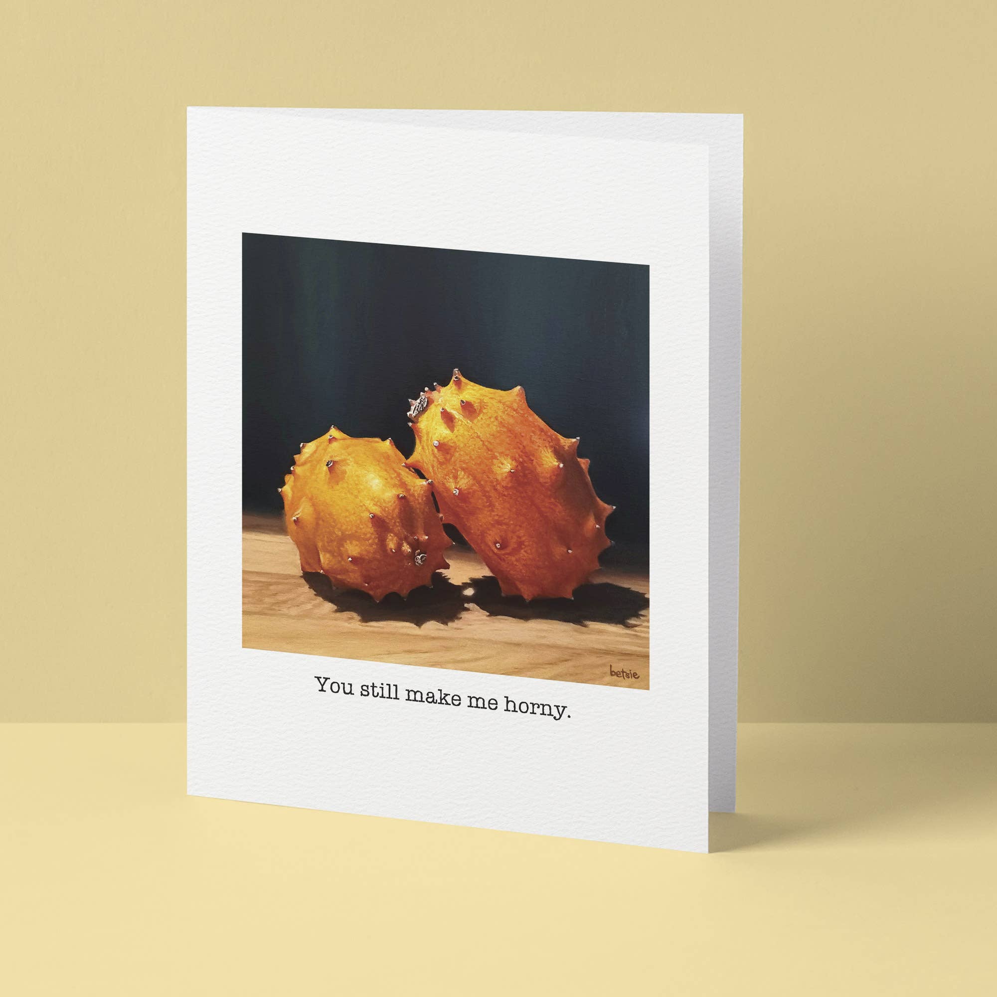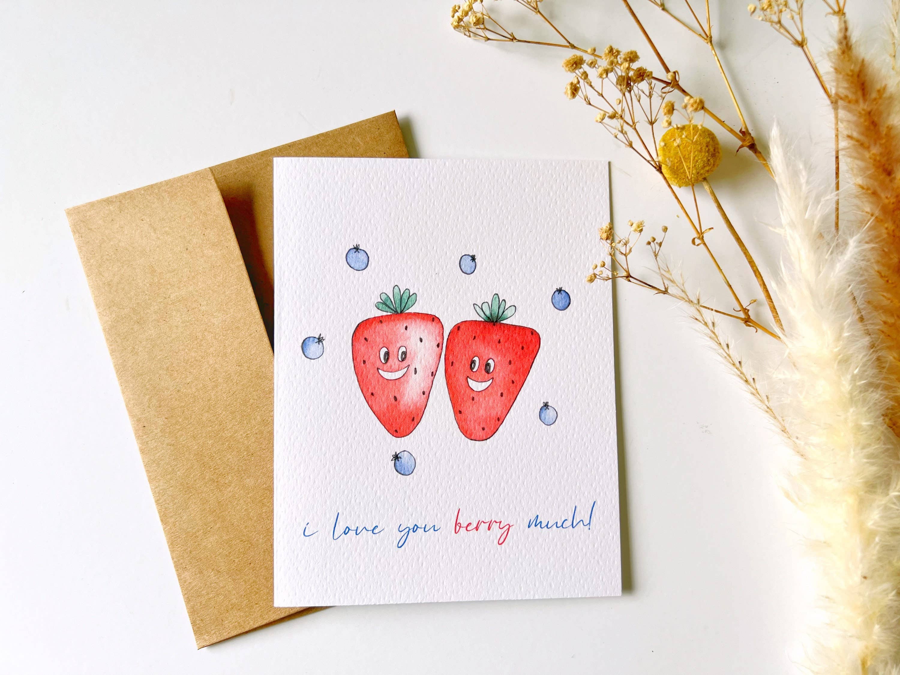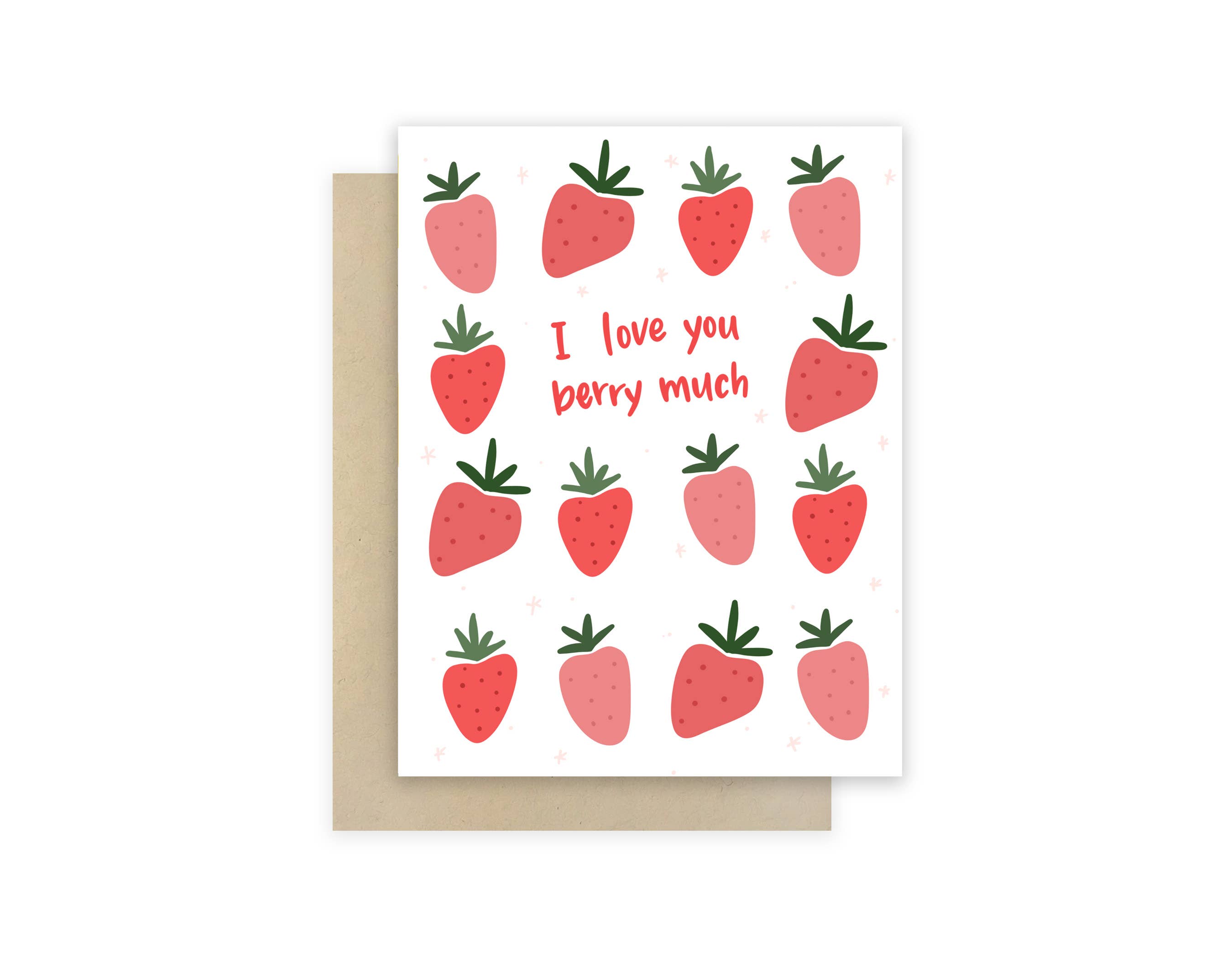 Send these puntastic strawberries to your sweetheart and witness heart melt. Or melt the hearts of newlyweds, married-for-50-years-weds, or two people who are just adorable together. You chose this card berry wisely. * A2 (4.25 x 5.5 inches) * Blank inside. . .don't hold back! * Made in the USA...by nice people in Boise, Idaho. * Compostable clear bag...food for microorganisms!