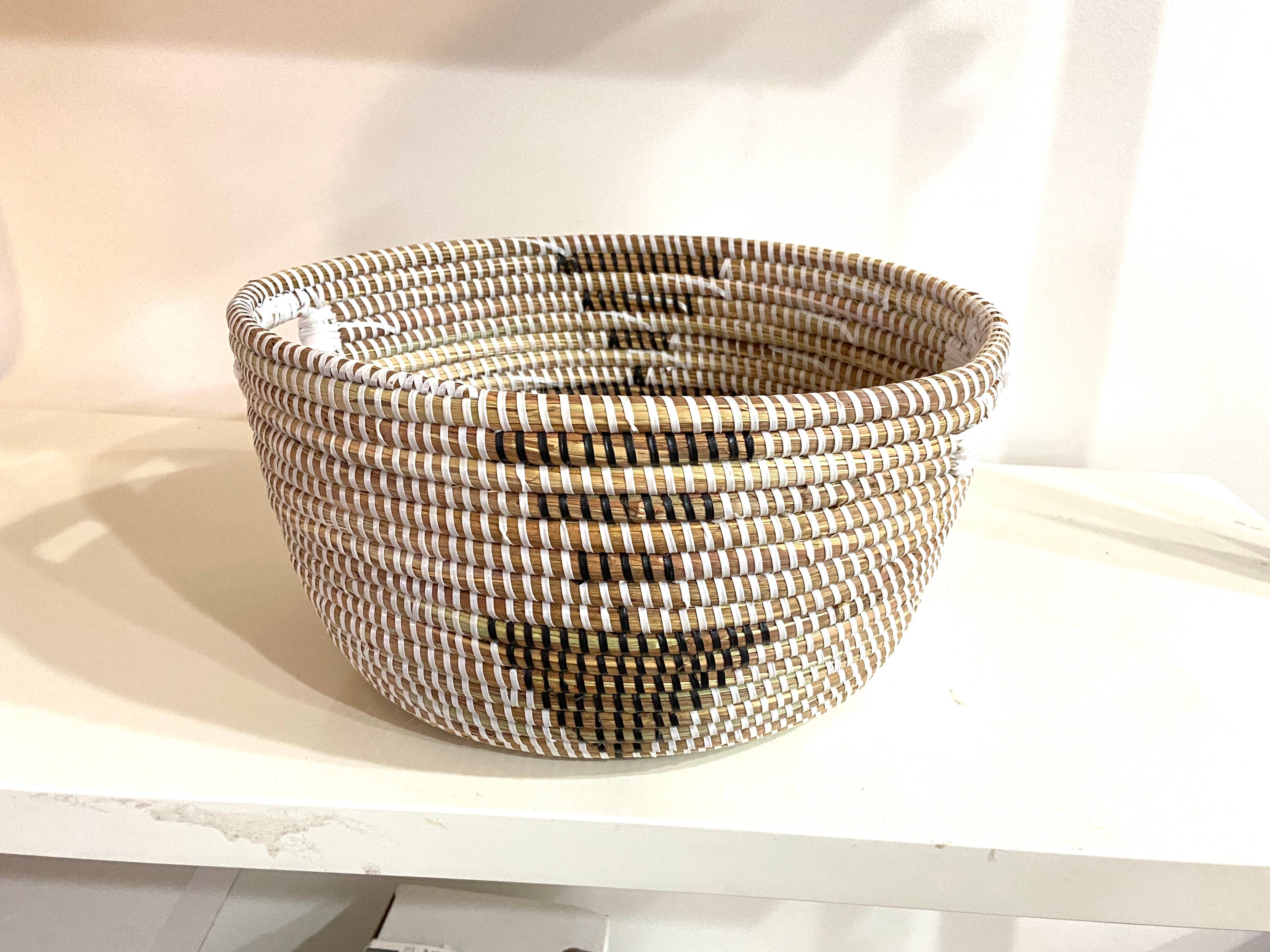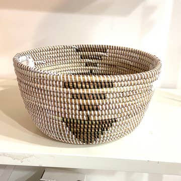 Using ancient Swazi weaving techniques, along with ingeniously contemporary designs, the women artisans create brilliantly hued, meticulously woven baskets out of sisal. Sisal, a plant in the agave family, is a weed that grows throughout Swaziland. Because it is invasive, sisal is ideal for craft production since harvesting does not threaten the country’s natural biodiversity. Over 700 women supplement their income by performing different aspects of the creative process including preparing raw sisal and dying it. All operations are done by hand. Each sisal basket comes with a string attached to the back so that you can hang it on the wall. In addition to making a beautiful table display or fruit holder, these baskets can also be hung as art. You can combine them with other baskets or works of art to make a feature wall collage. Sizes; Small - Appx 7" Medium - Appx 9" Large - Appx 12"