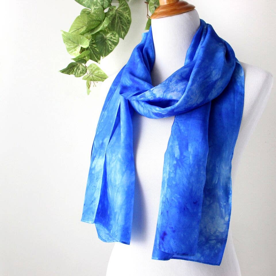 A soft, semi-sheer silk scarf hand dyed in a color that shifts from pale sea glass green to olive, speckled with gold and rust. I dye each scarf to order, so my lead time may be as much as 3 weeks. Please contact me if you need your order sooner. - One For One - Each scarf plants a tree through our partnership with One Tree Planted. Thank you! - Made of hand dyed habotai silk. 35"x35" square.