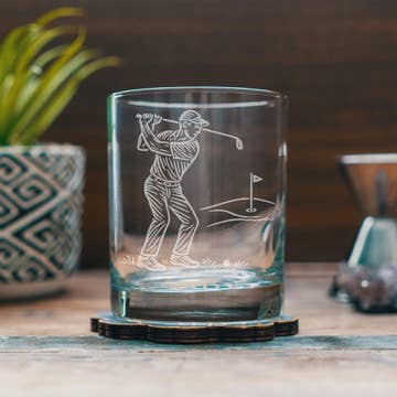 14oz. Old fashioned tumblers. Dishwasher safe. Printed with 22k gold ink. Libbey glassware. *Must place a minimum order of 12 assorted styles.
