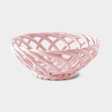 Octaevo's Sicilia ceramic Fruit Baskets typify the Southern European aesthetic of organic forms and geometric lines. Showcasing both expert craftsmanship and the purity of the natural materials used, the Fruit Baskets perform both as a practical and decorative piece. Each basket is made of delicately woven earthenware, creating a striking swirled pattern. This visual fluidity is enhanced by a fine, glossy glaze in contemporary colors. Elegant and refined, the Fruit Baskets will introduce an authentic and stylish quality to any space. Size: 7.5" diameter x 3" deep (ø 19cm x H 7.5cm) Material: Dolomite Ceramic Handmade in Portugal As they are each hand crafted, note that each basket will vary slightly.