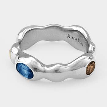 5x7 mm prong adjustable band ring. 14k gold filled prongs with 9.25 silver band. One size fits all adjustable.