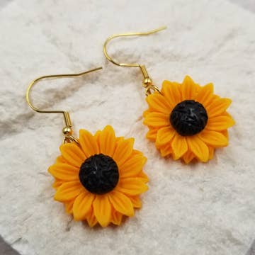 Upgrade your jewelry game with these quirky and playful sunflower earrings. Handmade and lightweight, these unique earrings are sure to add a touch of fun to any outfit. Embrace your inner flower child and bloom with style! Earrings are made from lightweight polymer clay and gold-plated brass huggie hoops.